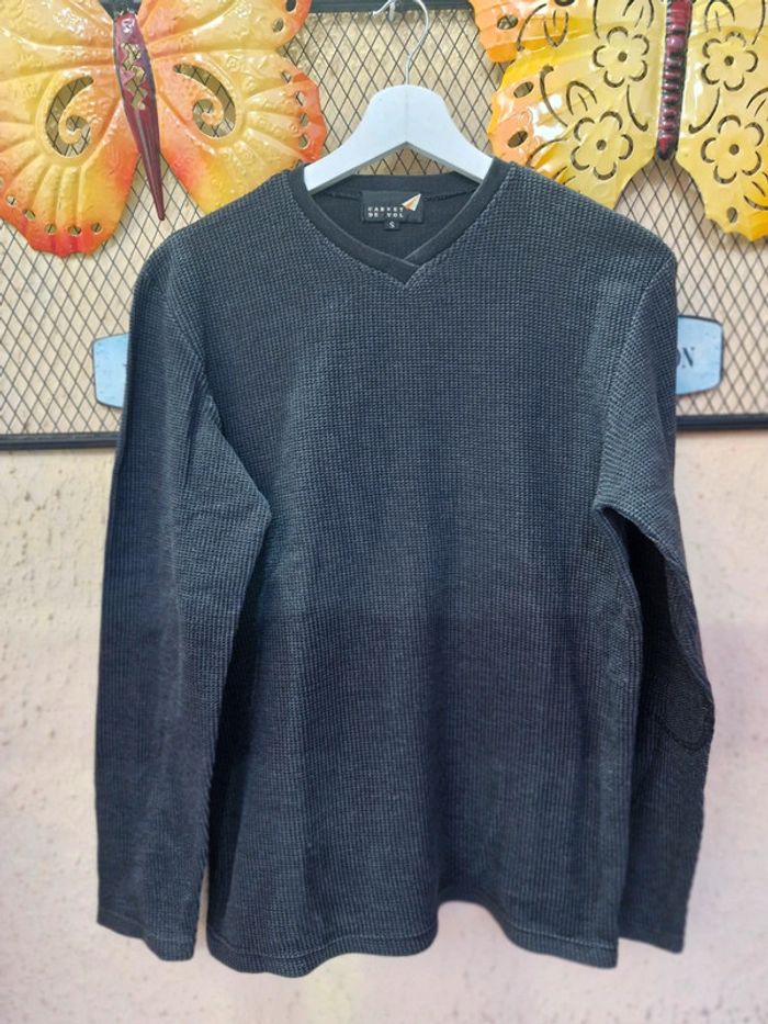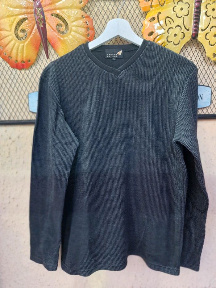 #manouwhomme36 Pull homme, col en V. 100% coton. Couleur gris. TailleS. Marque carnet de vol Très bon état