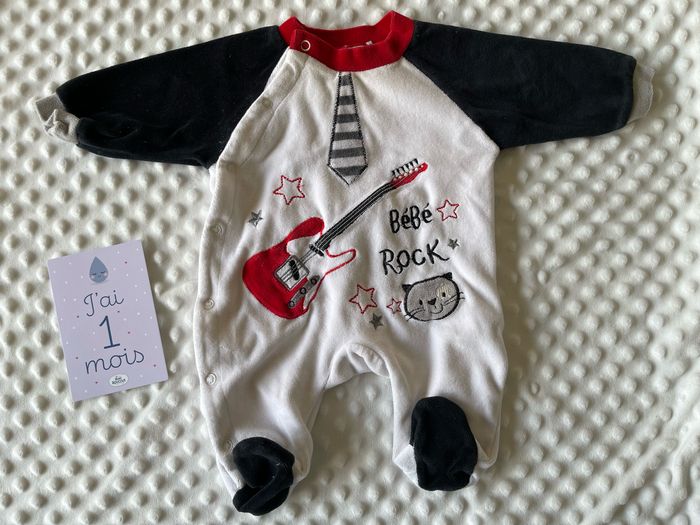Bonjour Voici un pyjama avec des dessins liés à la musique rock en très bon état. Taille 🧷 1 mois Avec pressions 🗝 Couleurs 🎨 blanc & motifs De la marque Tom&Kiddy 🔖 N’hésitez pas à regarder dans mon dressing si autre chose peut vous faire plaisir, vous réduirez les frais d’envoi et profiterez de réductions supplémentaires. À bientôt 🍼