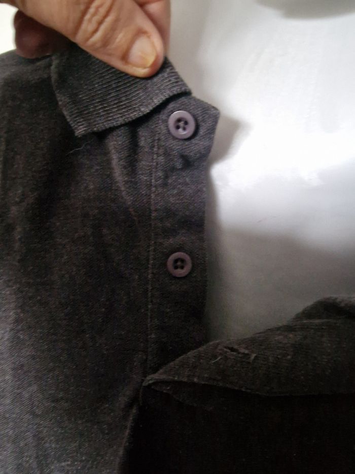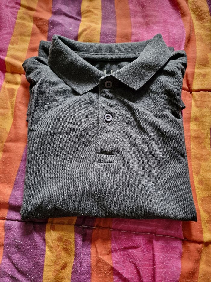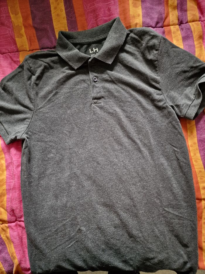 Les beaux jours reviennent alors pourquoi ne pas opter pour un polo à manches courtes ? Un peu plus épais que les t-shirts pour ne pas avoir trop froid et un tantinet plus élégant avec le col à revers typique du polo. Un gris anthracite qui s'accordera à toutes vos tenues (Un 2ème polo identique mais dans un autre colori est disponible sur mon dressing) Mesures aisselles de 44cms à plat à 50 cms en tirant (tissu extensible) Hauteur 67cms Je n'ai pas remarqué d'anomalie