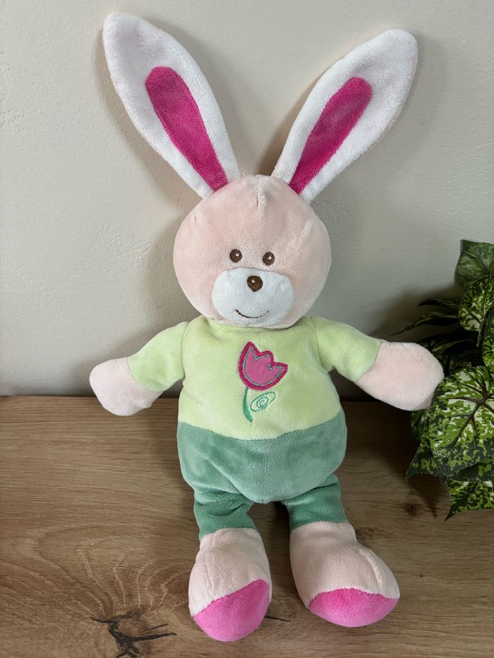 Doudou lapin vert rose tulipe ajena - photo numéro 1