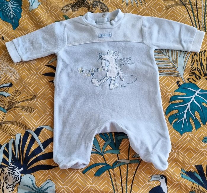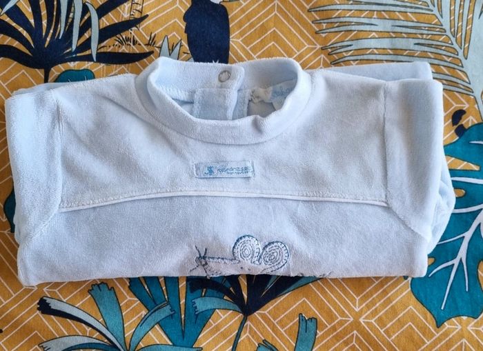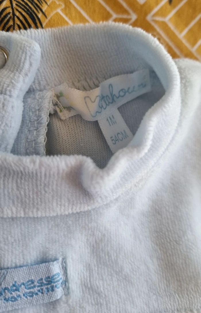 Pyjama bleu clair garçon Taille: 1 mois Boutons pression au dos Matière : 100% coton Très bon état