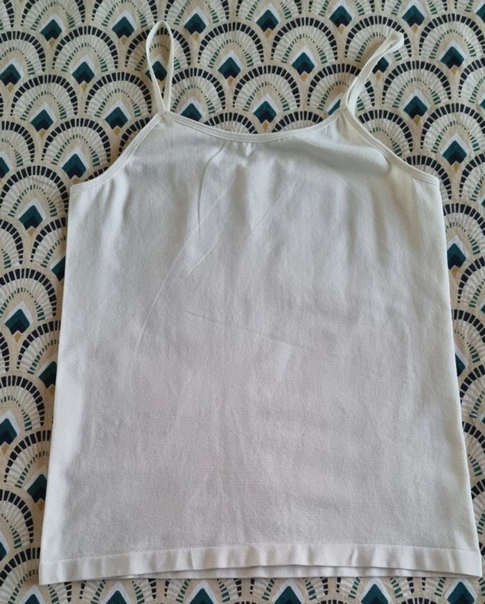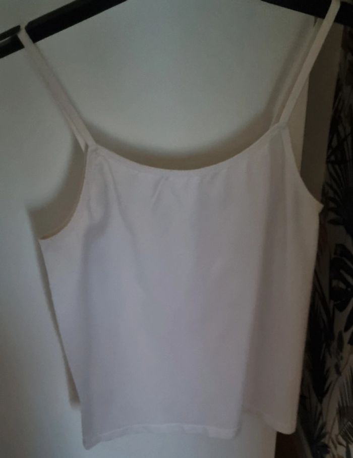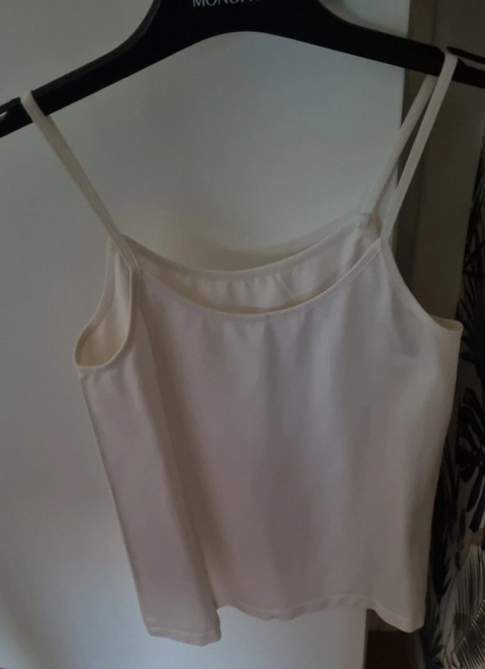 Top court blanc cassé avec bretelles Taille 38 Sans étiquette Matière : elasthanne et viscose