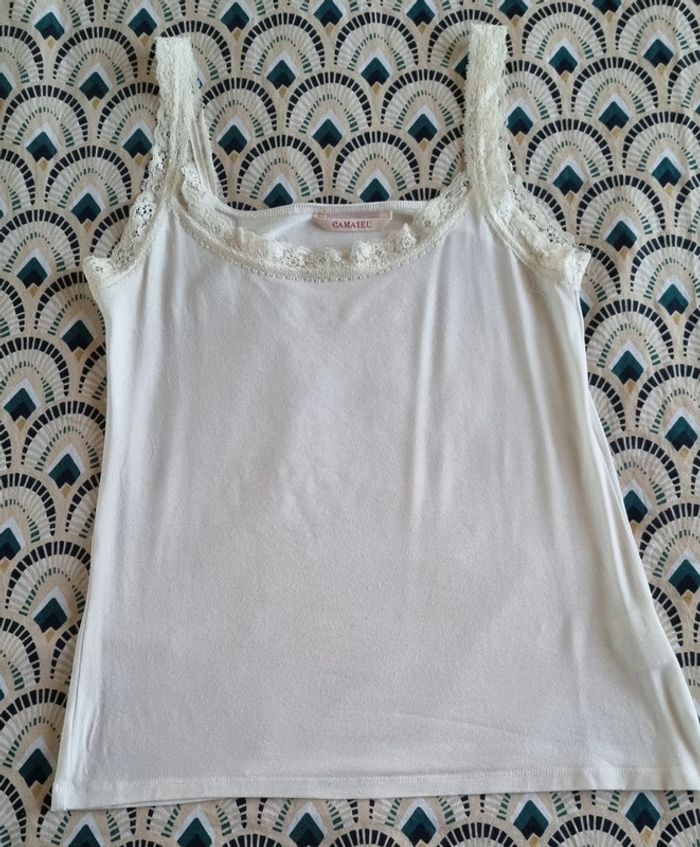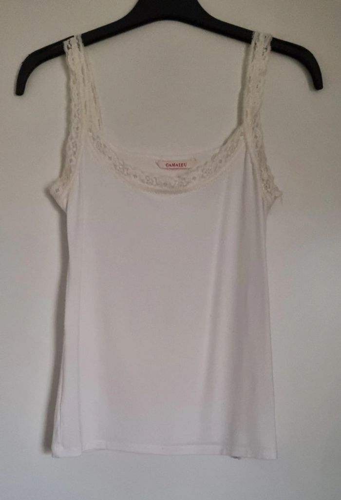 Top blanc cassé à bretelles dentelle - photo numéro 1