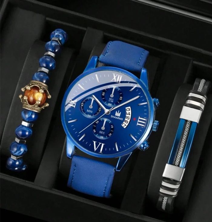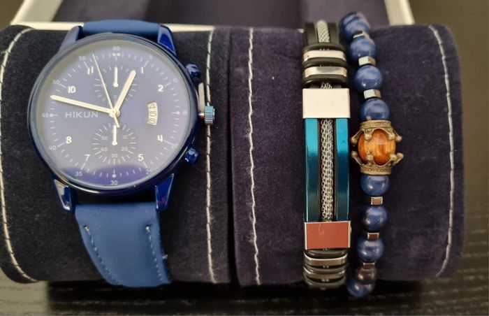 Ensemble montre et 2 bracelets bleu azur