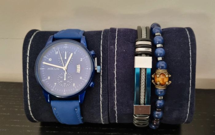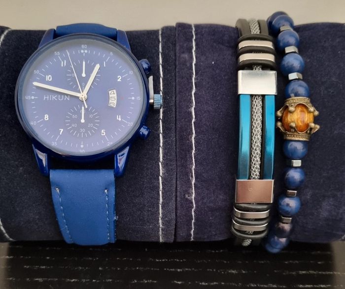 Ensemble montre et 2 bracelets bleu azur - photo numéro 1