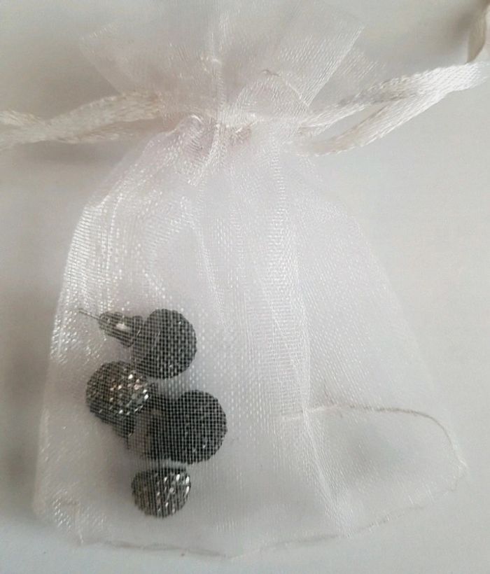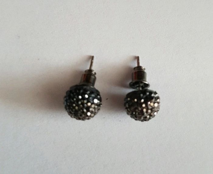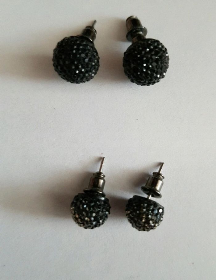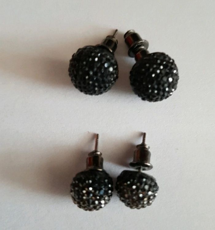Lot de 2 paires de boucles d'oreilles clip fantaisie 1 paire avec pierres noir et 1 paire avec pierres gris Portées 2 fois Dans leur pochette organza