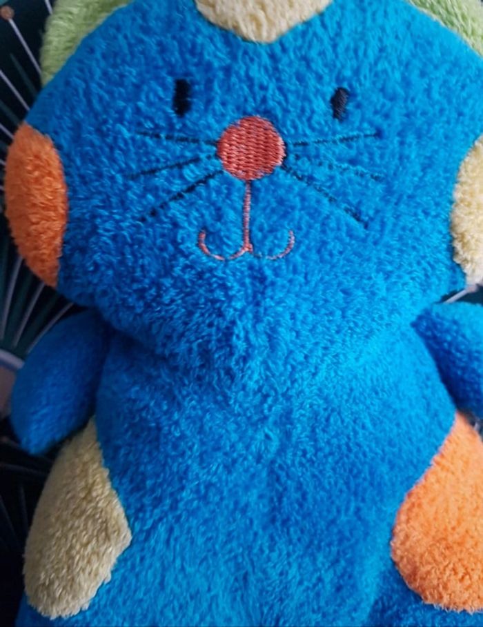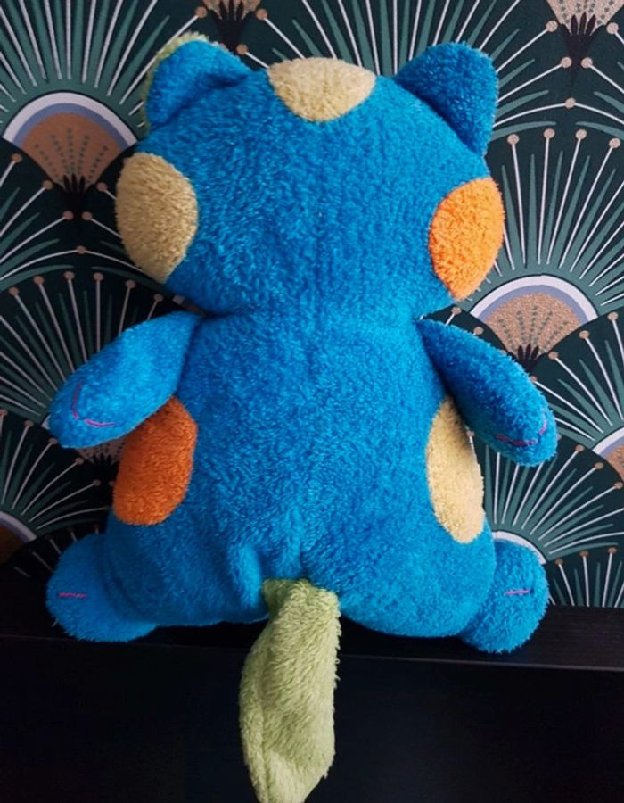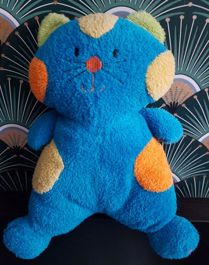 Peluche chat bleu avec hochet quand on le secoue lavé