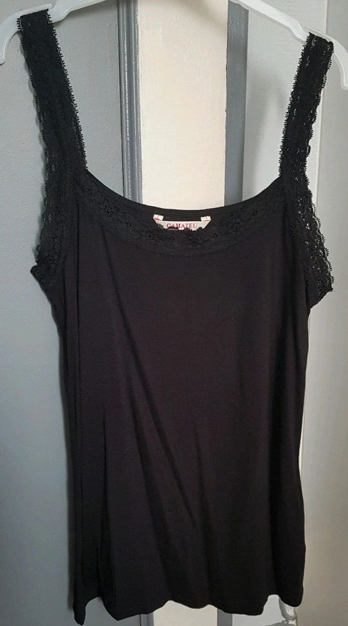 Top noir à bretelles dentelle Mélange de coton et elasthanne Taille 1 (36/38) Peu porté
