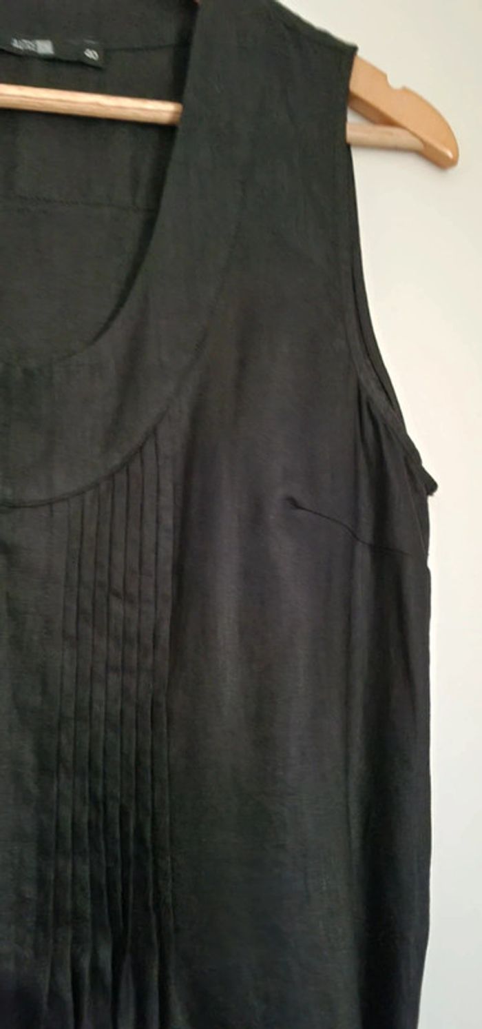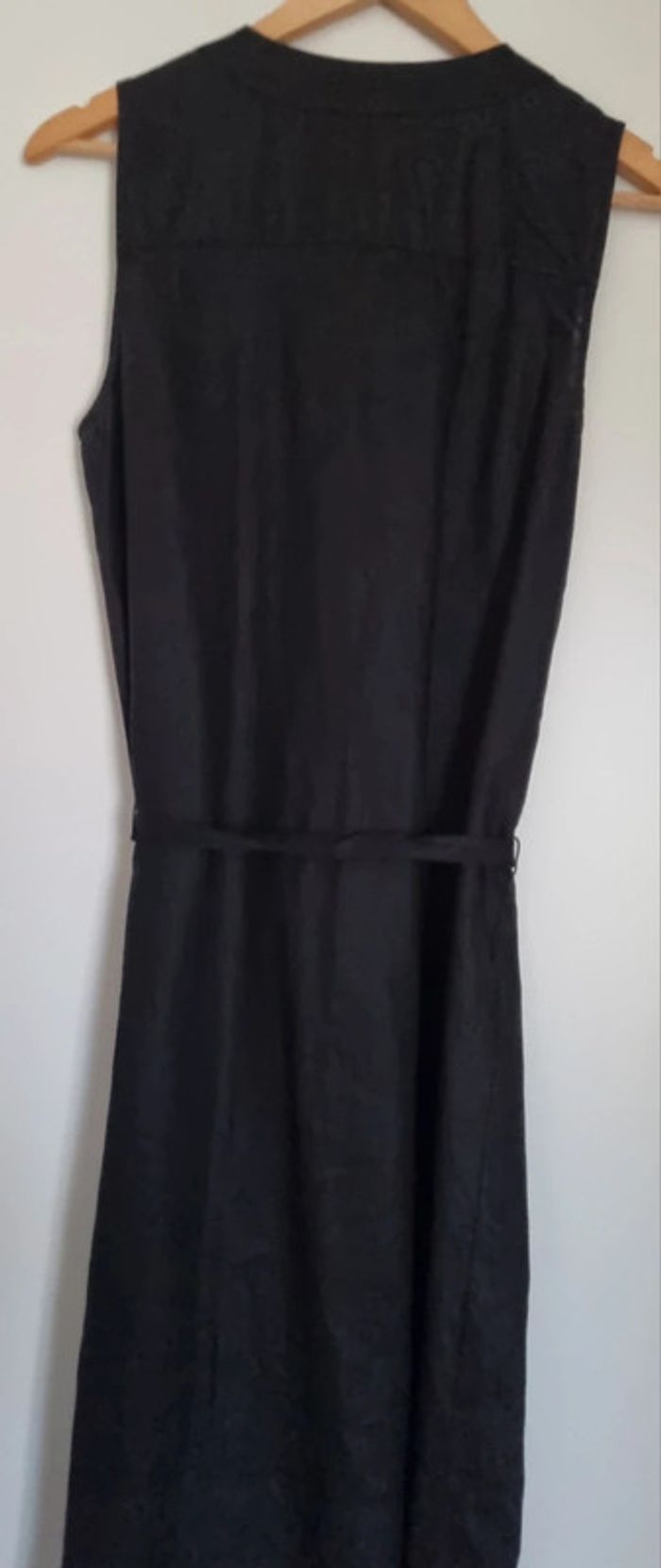 Robe noire longue sans manches avec ceinture Coupe droite 100% lin Portée 3 ou 4 fois Taille 40 Sans doublure Longueur 104 cm