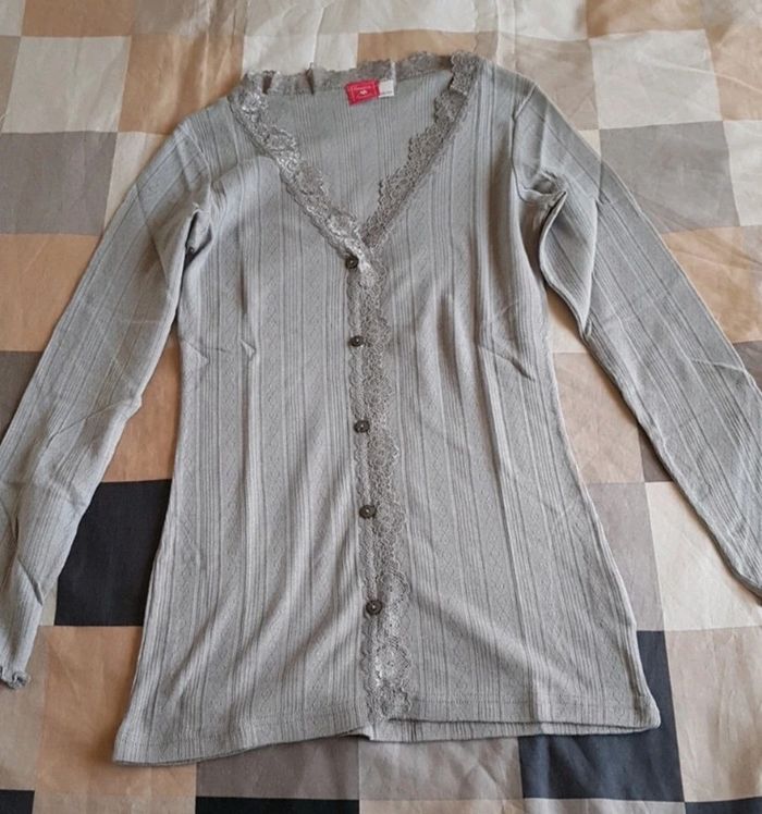 Gilet de nuit gris en V dentelle - photo numéro 1