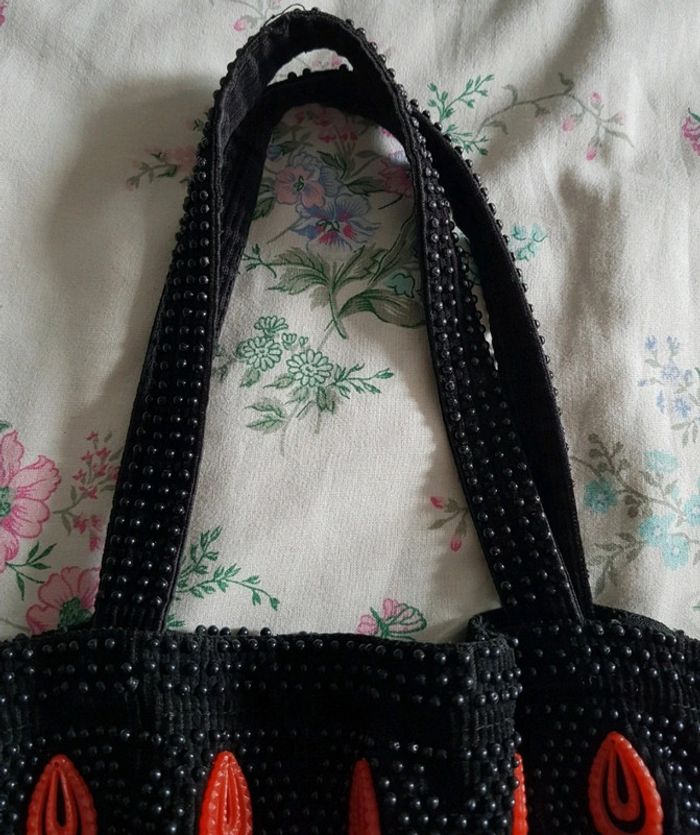 Sac à main noir à fleurs orange - photo numéro 8
