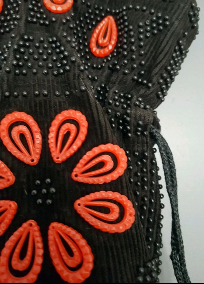 Sac à main noir à fleurs orange - photo numéro 6