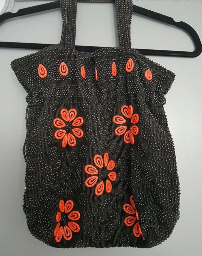 Sac à main noir à fleurs orange - photo numéro 2