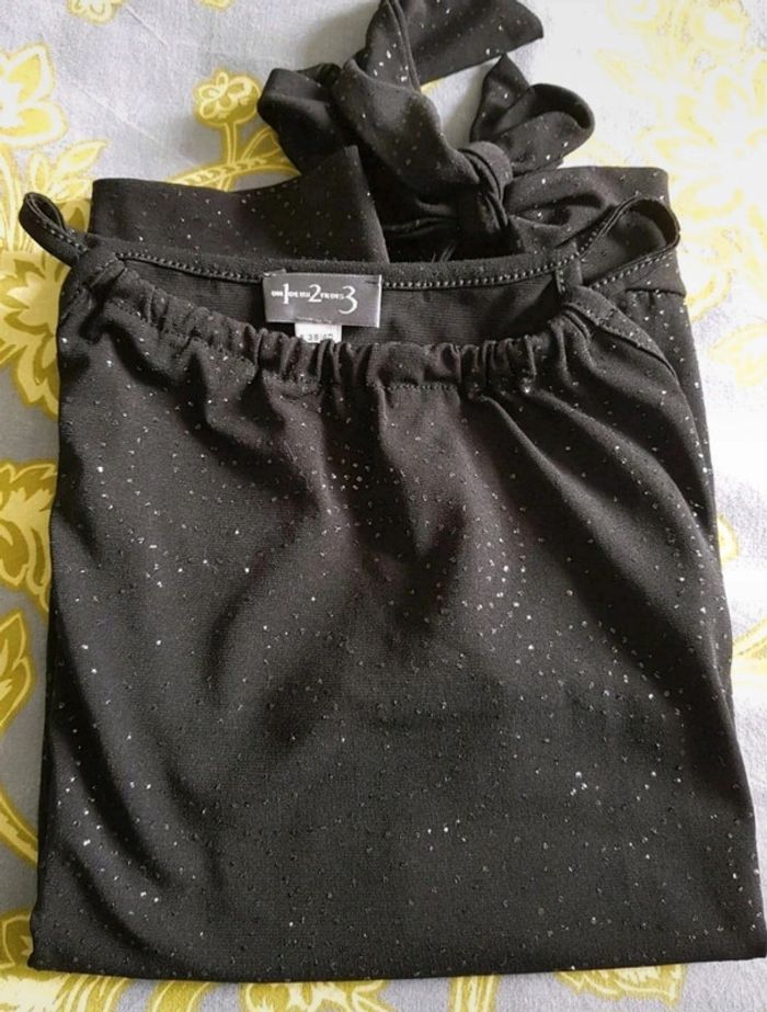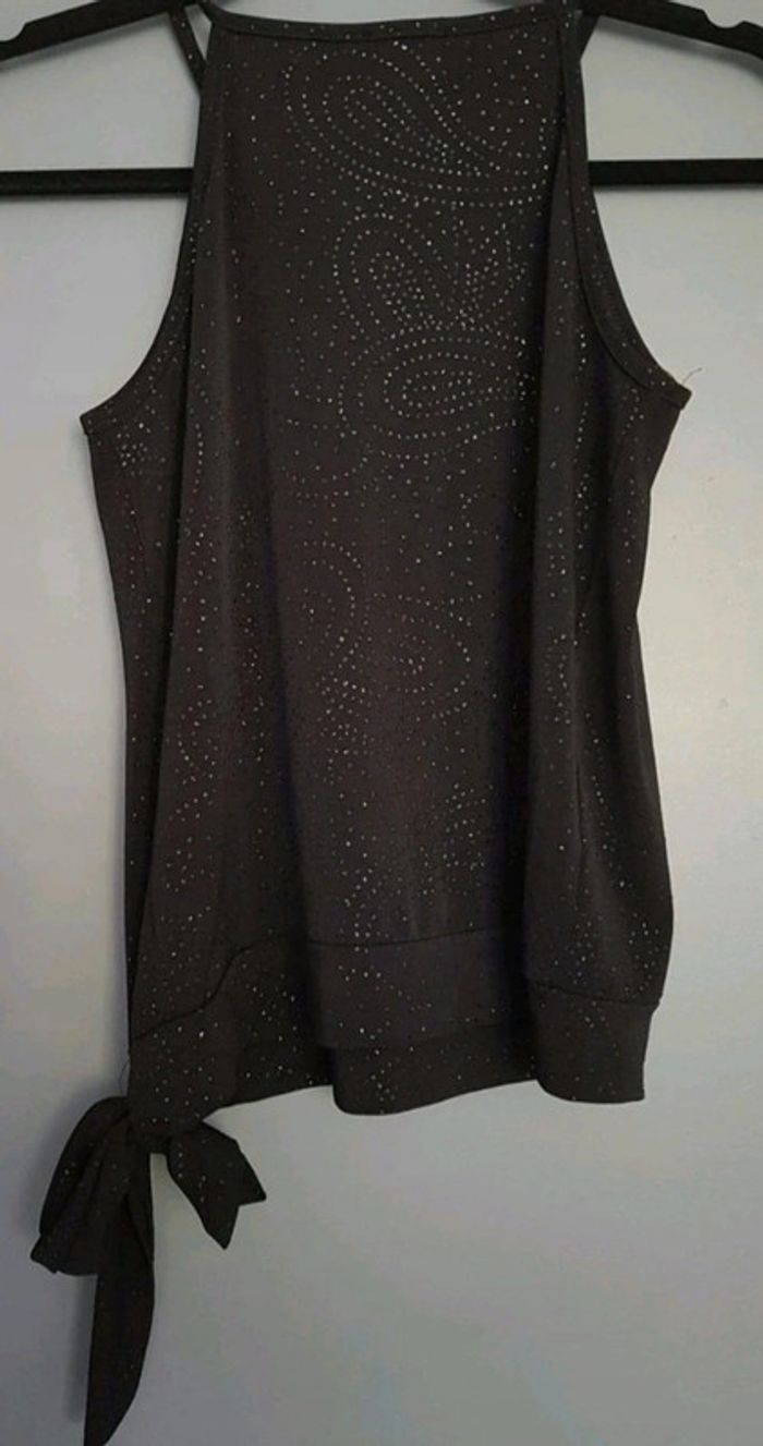Débardeur noir sans manches effet strass brillant 92% polyester et 8% elasthanne Taille : 38/40