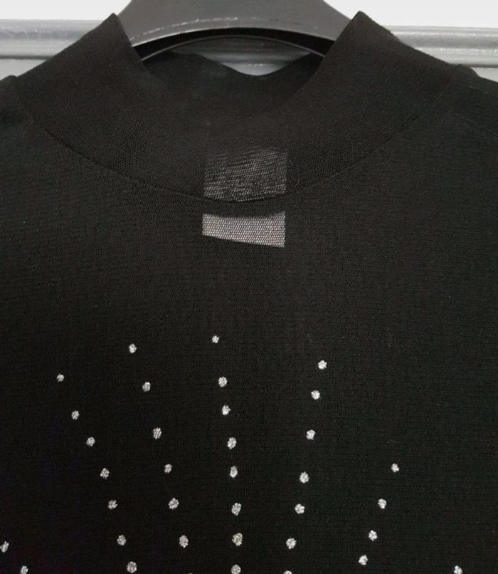 Tee-shirt noir manches courtes, col montant, soleil strass argenté En polyester et elasthanne Taille : 38/40