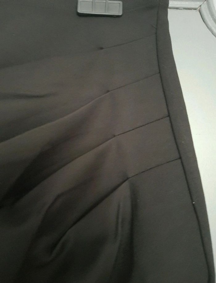 Jupe courte noire, fermeture éclair au dos, pliures sur le devant et côtés 65% viscose, 30 polyester et 5% elasthanne