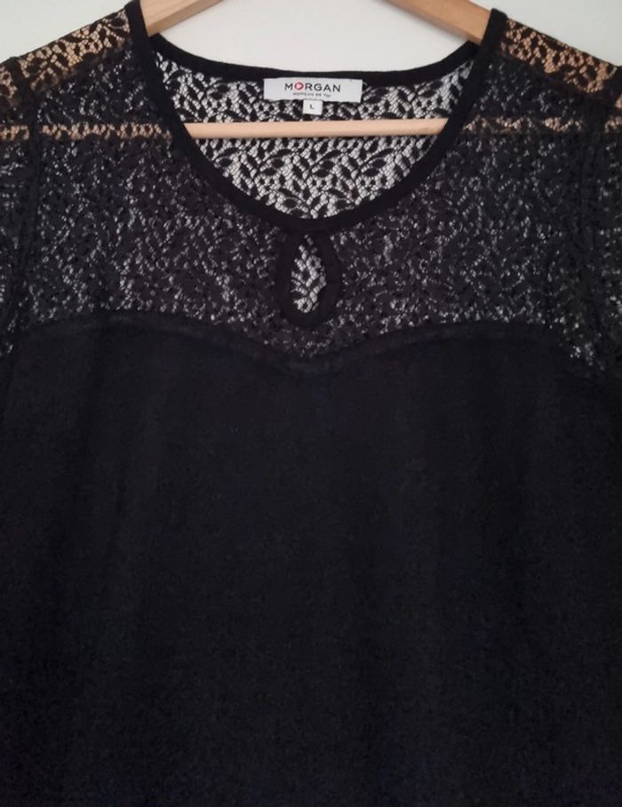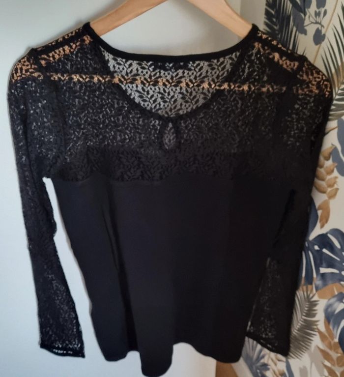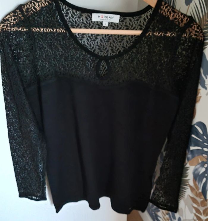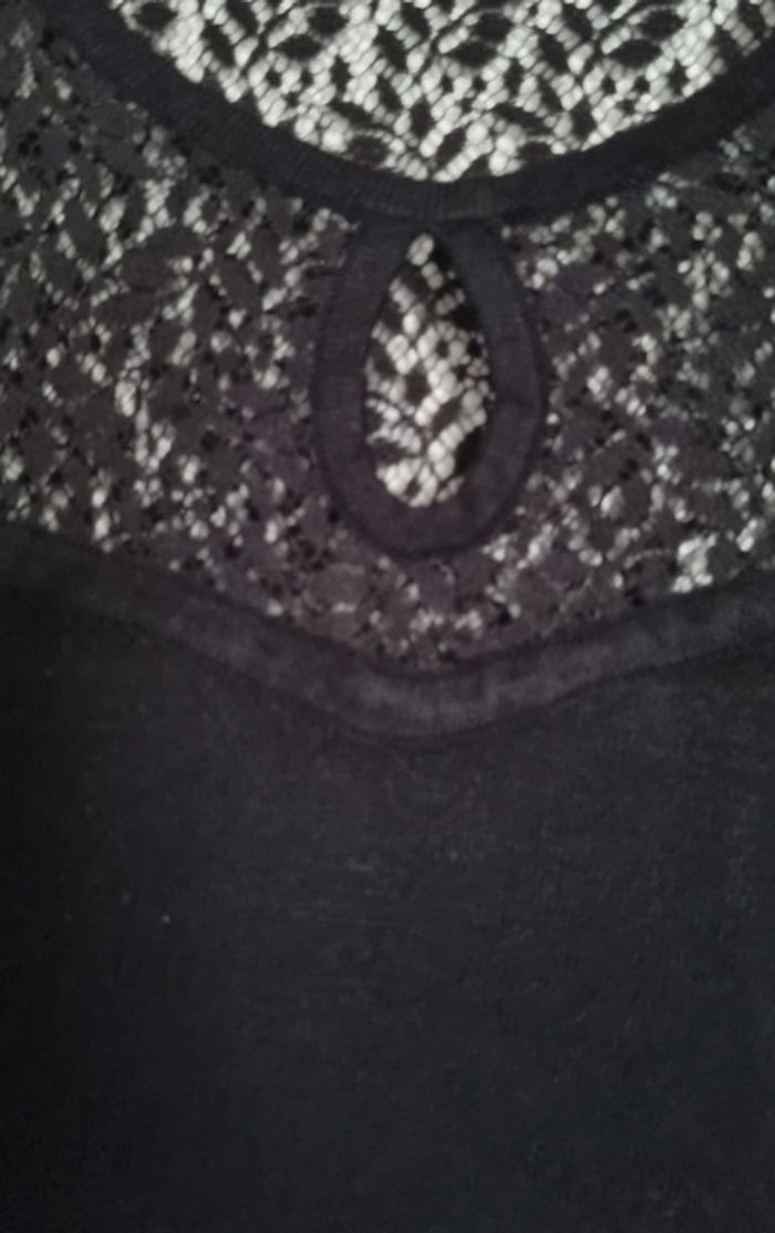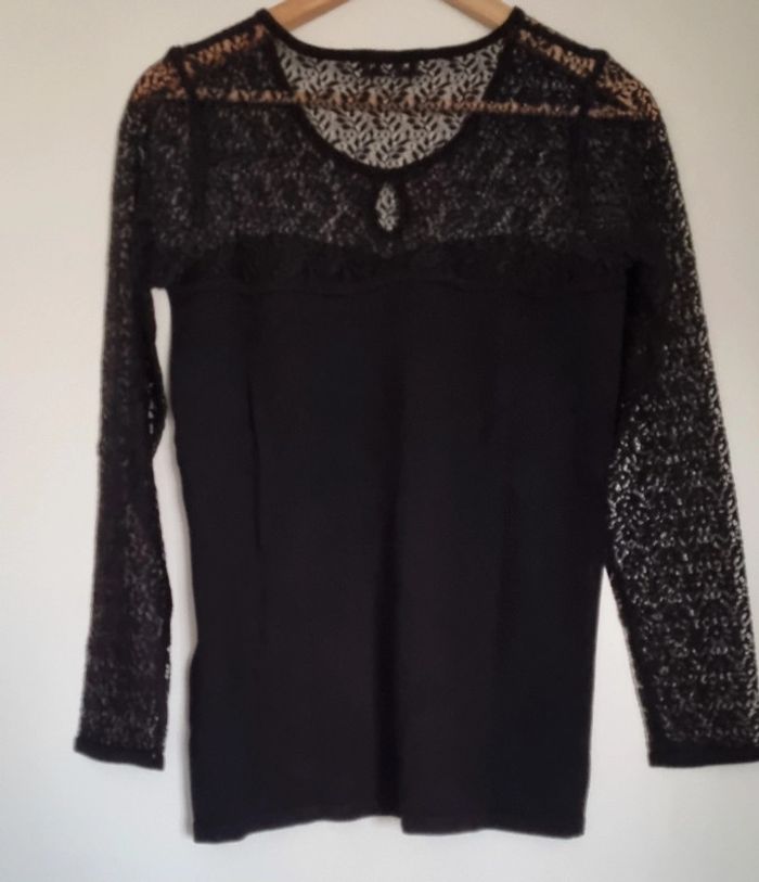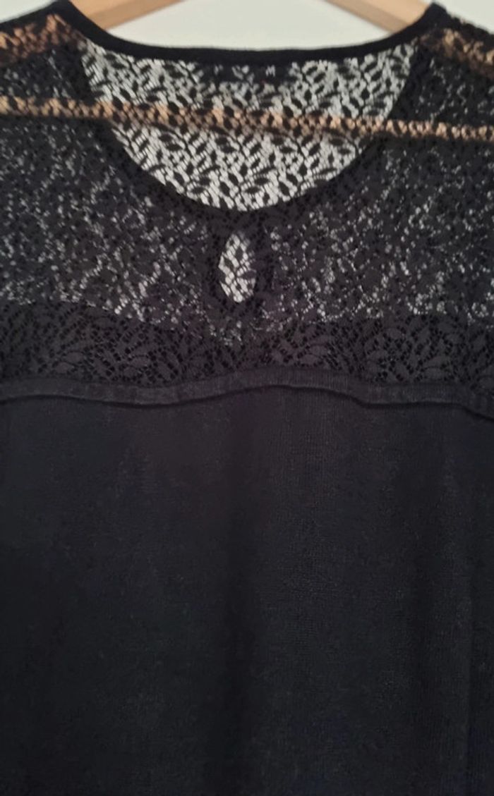 Pull noir manches longues à dentelle 80% viscose et 20% polyamide Taille L