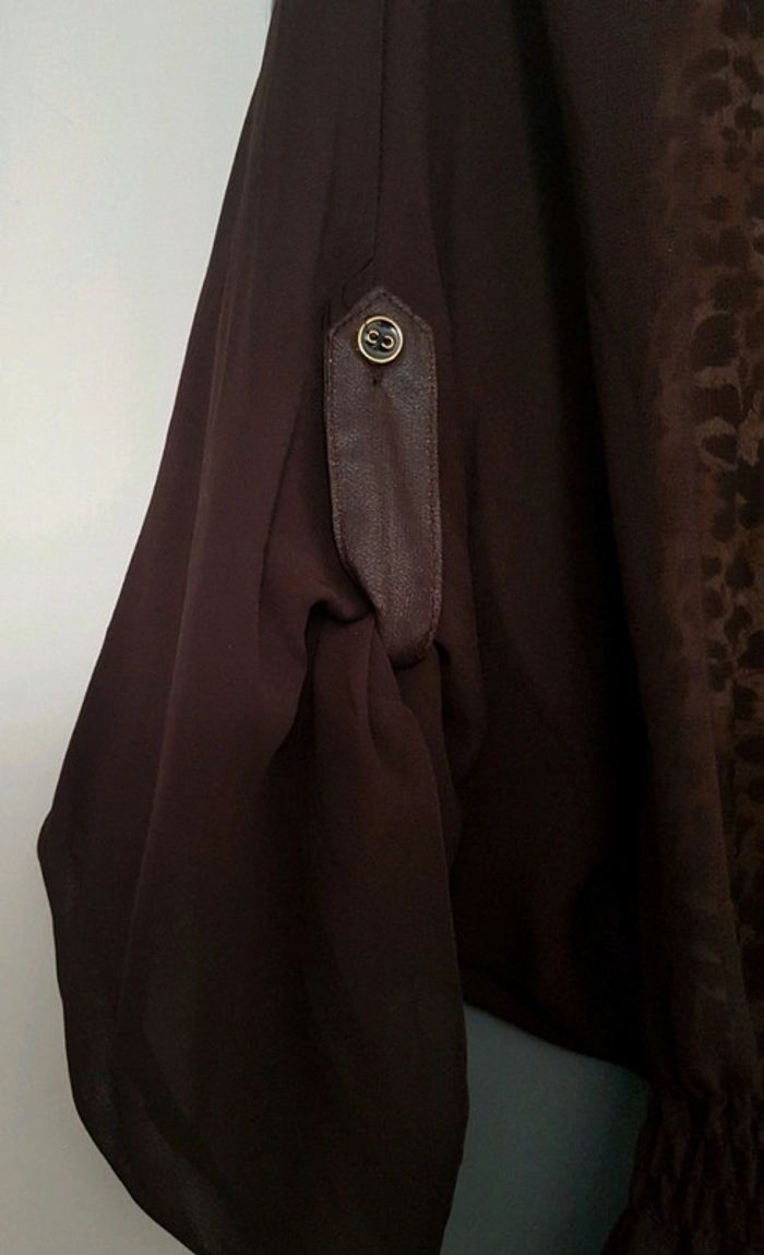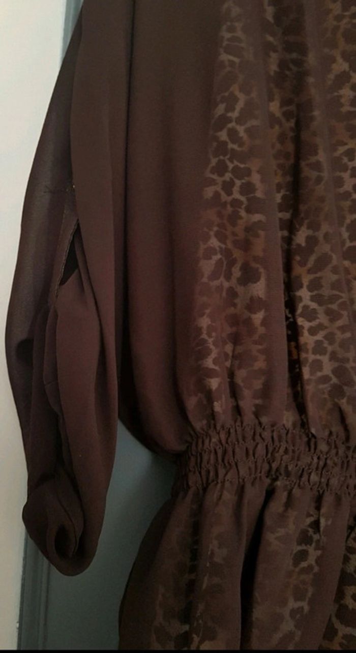 Tunique impression léopard manches longues transparentes marron, taille élastique 35% polyester et 65% coton