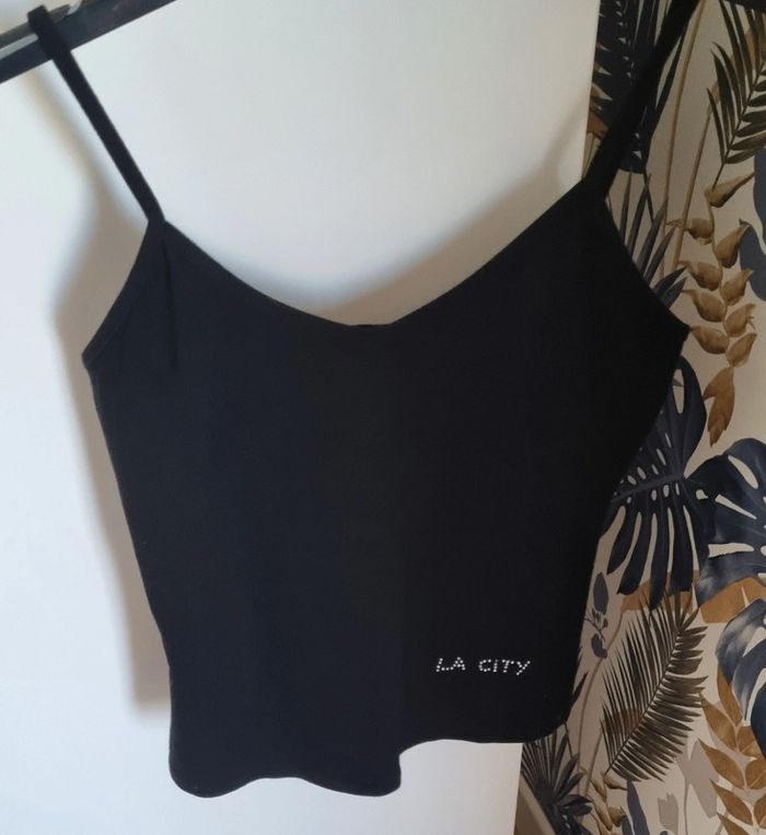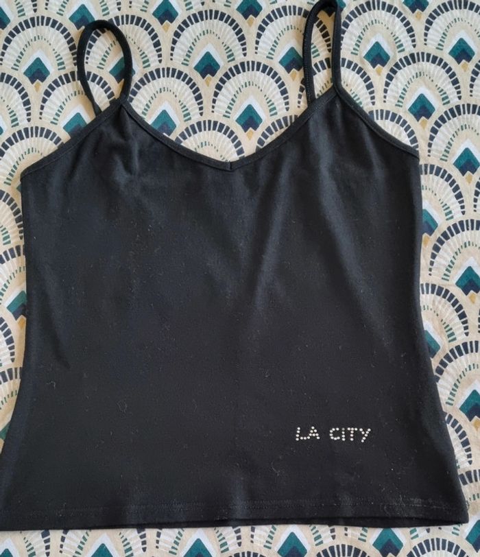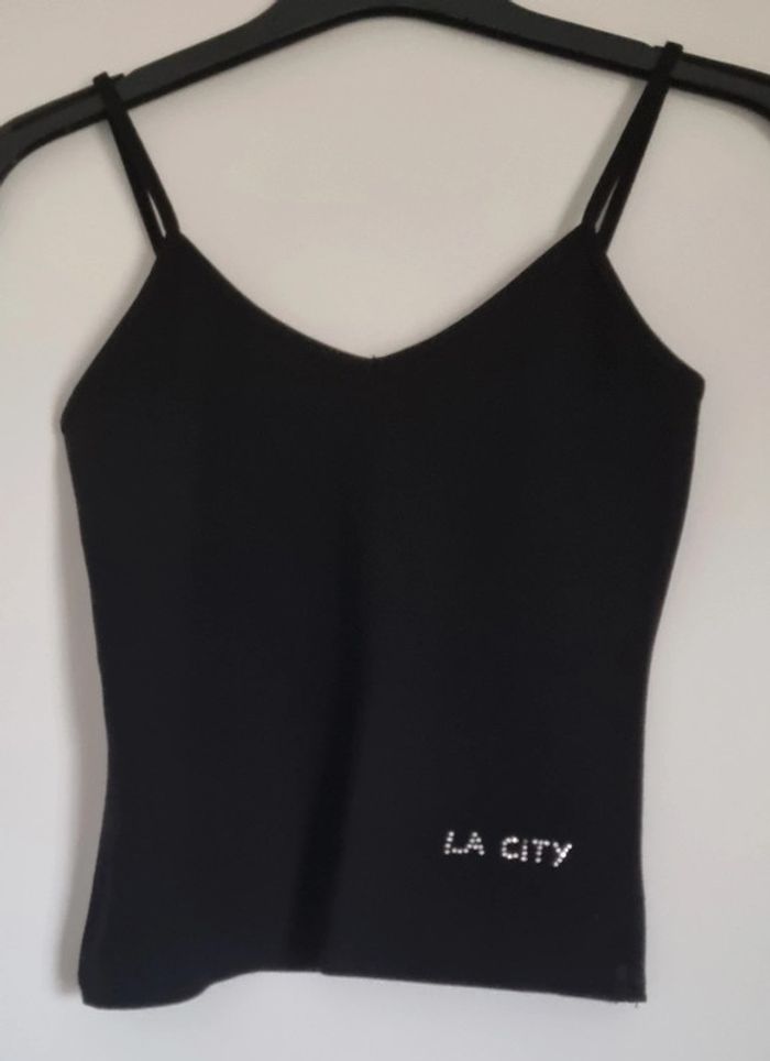 Top court noir Avec écriture La City en strass en bas 95% viscose et 5% elasthanne Taille 1