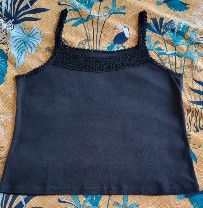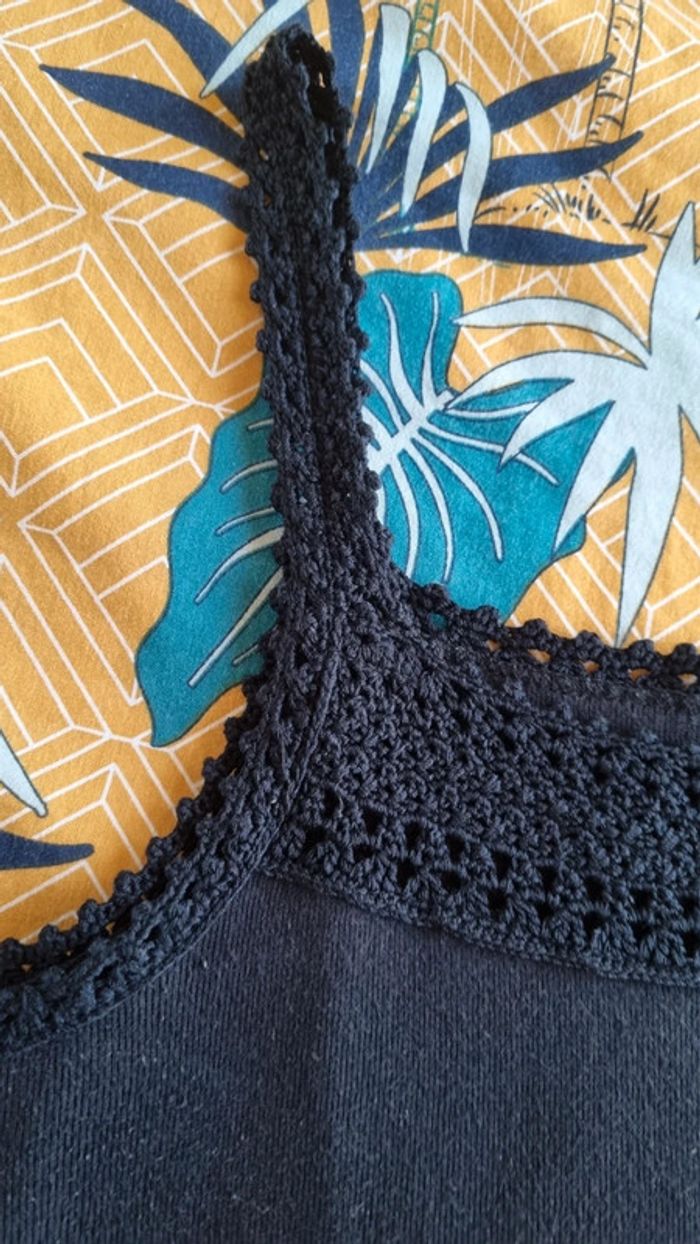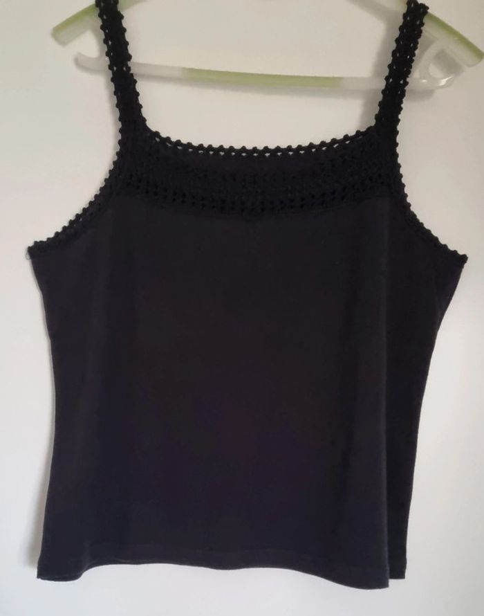 Top noir à bretelles et devant crocheté 100% coton Taille 40/42 Très bon état