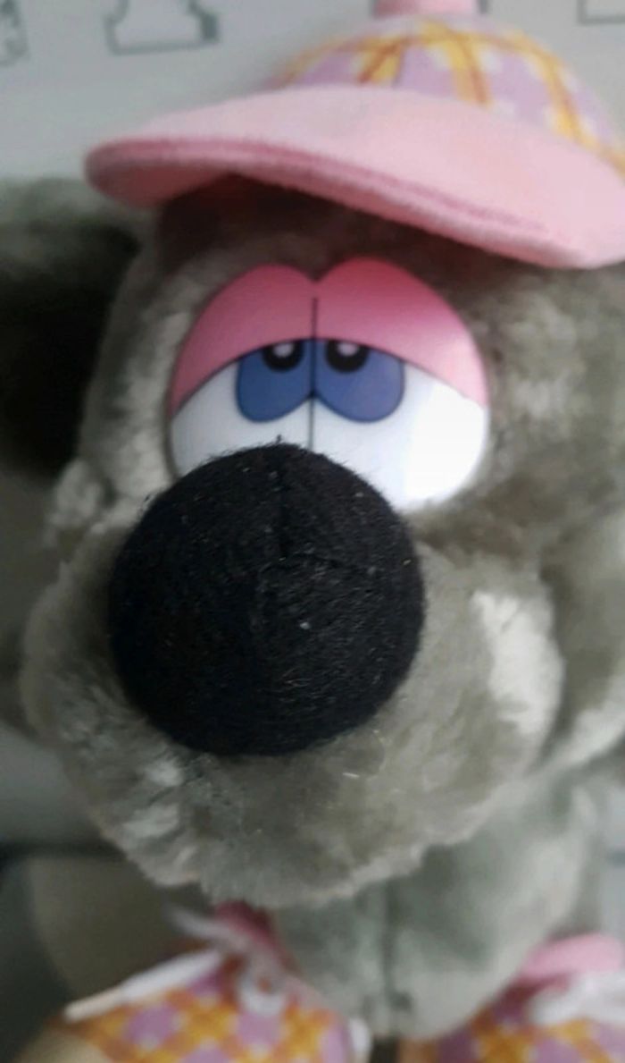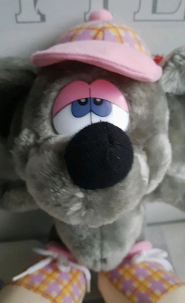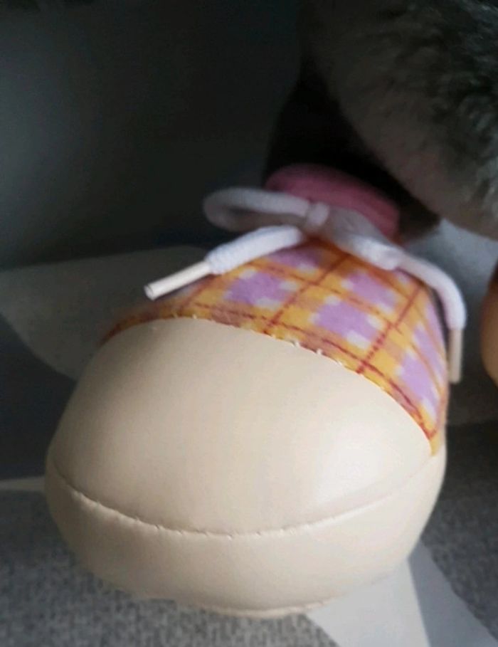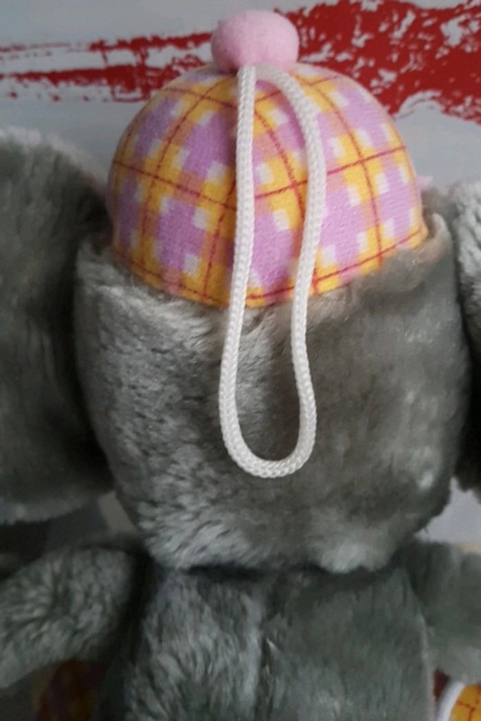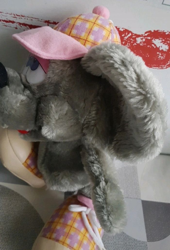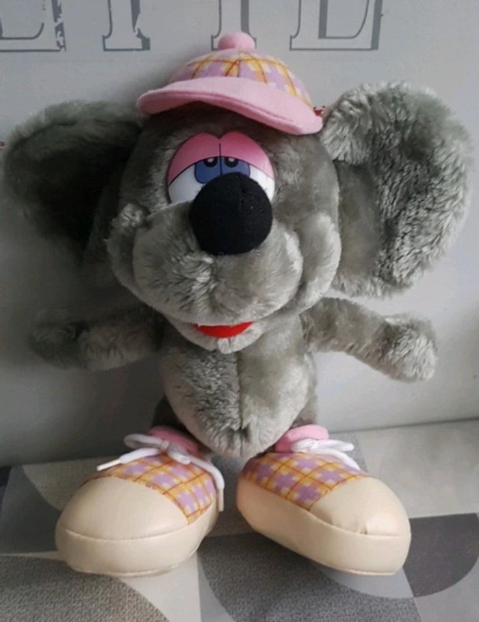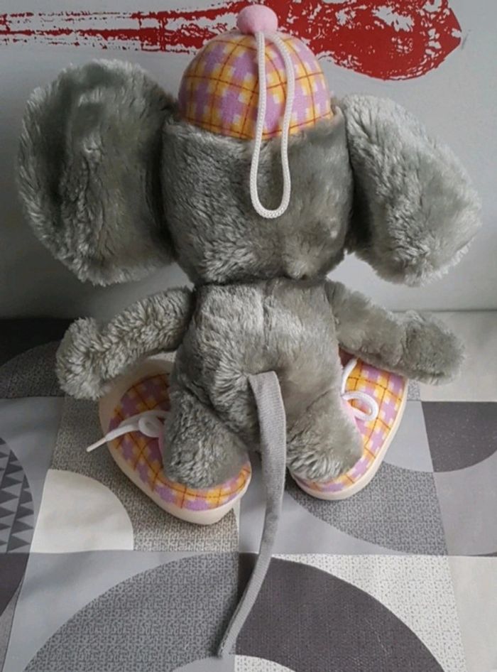 Peluche souris grise avec casquette rose et chaussures à lacets Dimensions : 30 cm
