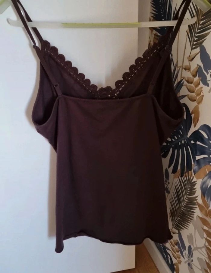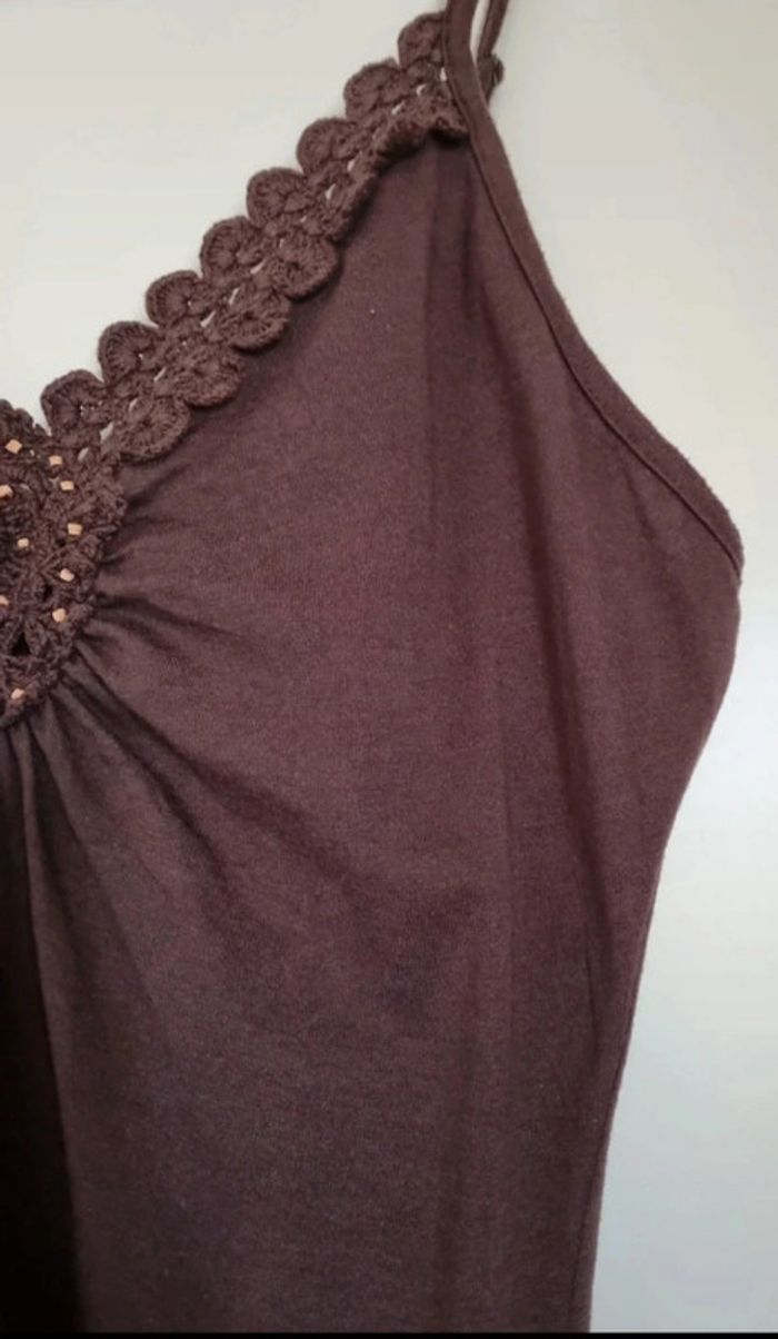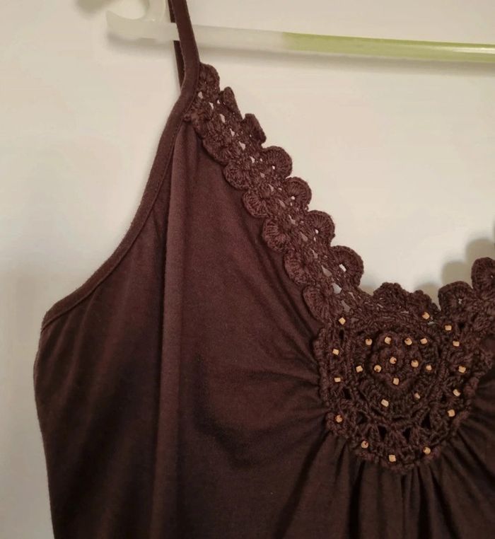 Top marron à bretelles et rosace en crochet - photo numéro 2