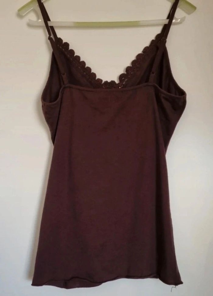 Top marron à bretelles et rosace en crochet - photo numéro 3