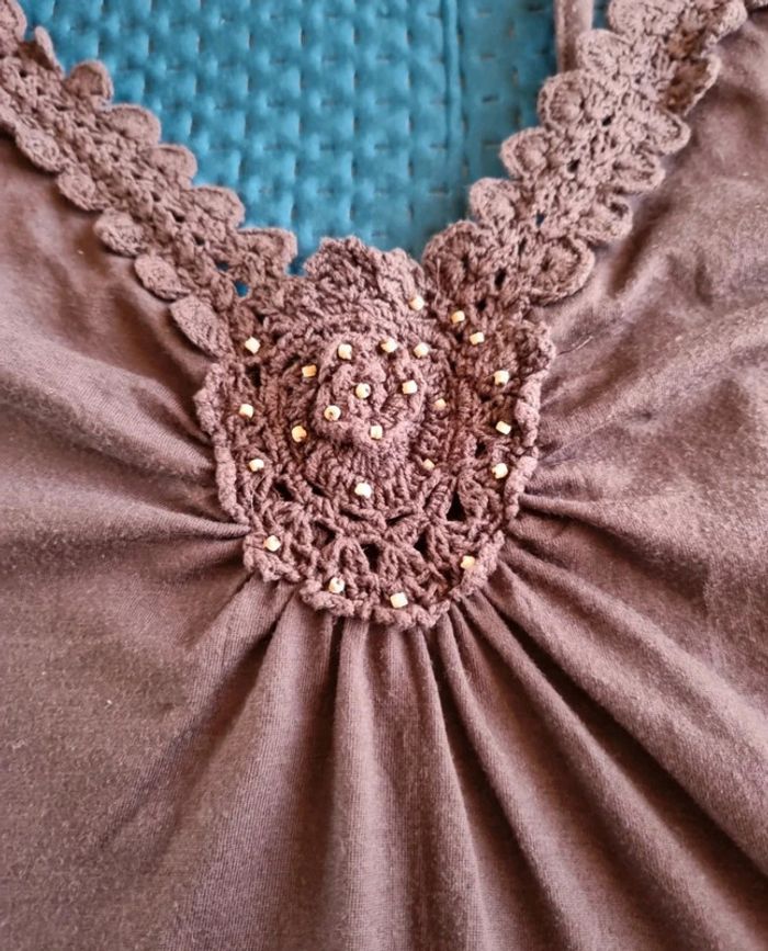 Top marron à bretelles et rosace en crochet - photo numéro 1