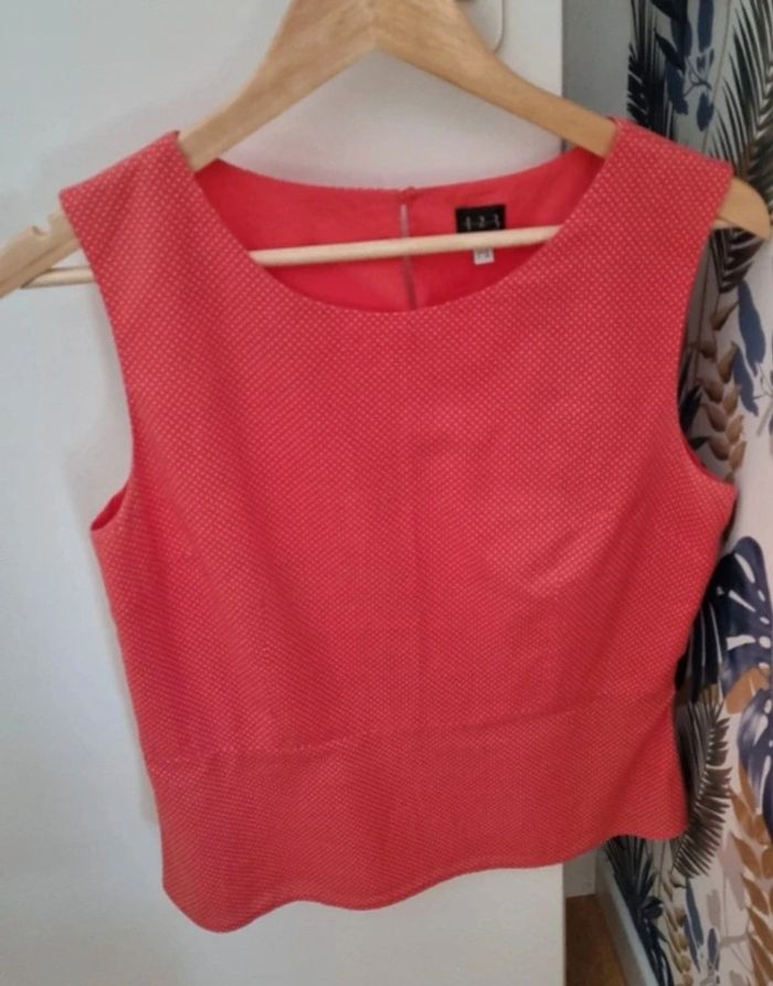 Débardeur corail à pois blancs - photo numéro 1