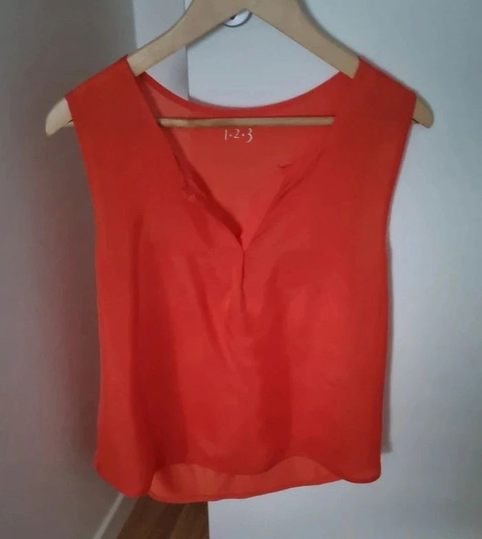 Débardeur sans manches orange corail bi matière - photo numéro 6