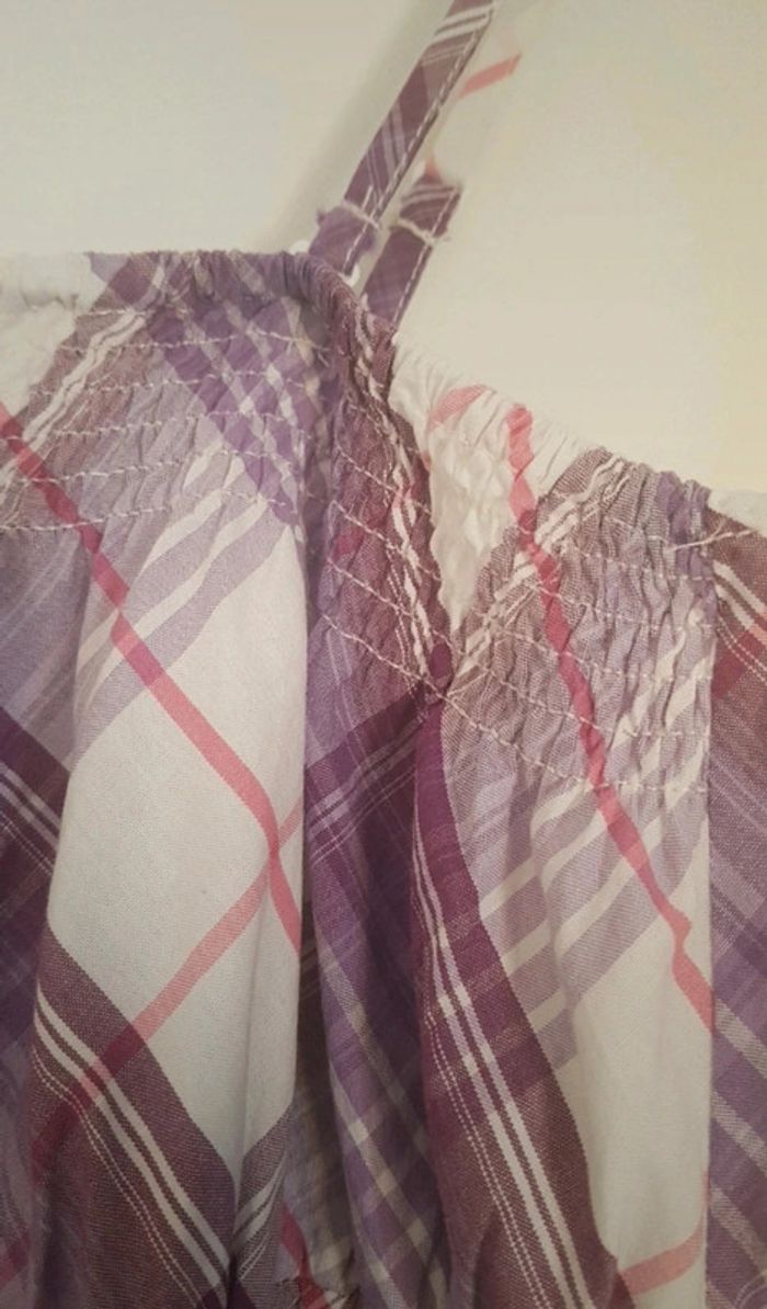 Robe d'été à bretelles réglables mauve et blanc 100% coton Taille élastique au niveau de la poitrine Peut se porter dans les bretelles Longueur : 79 cm