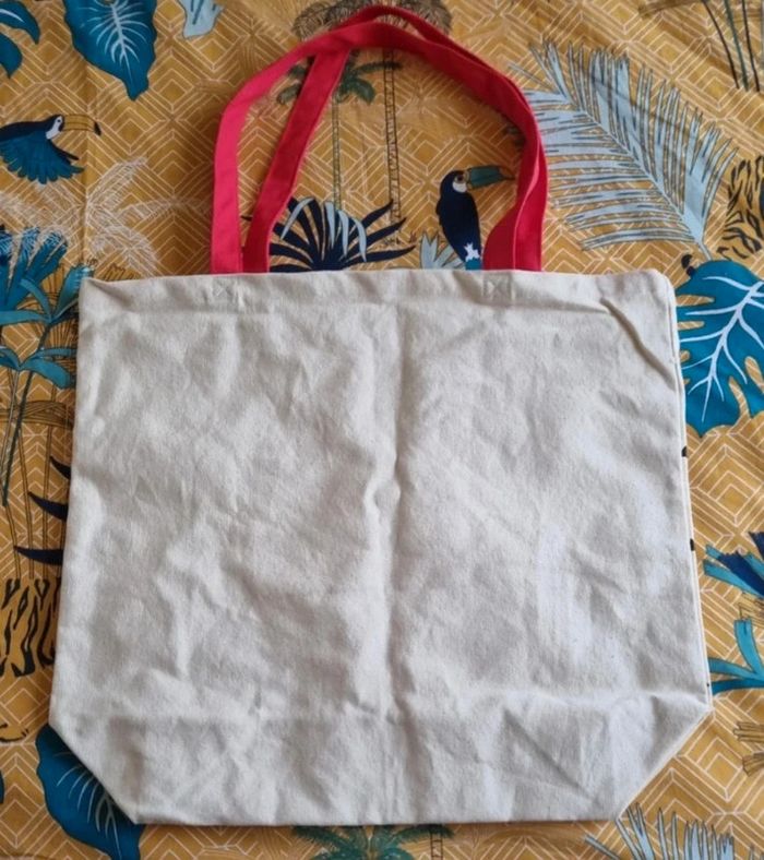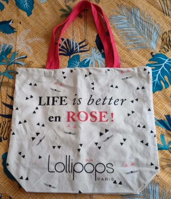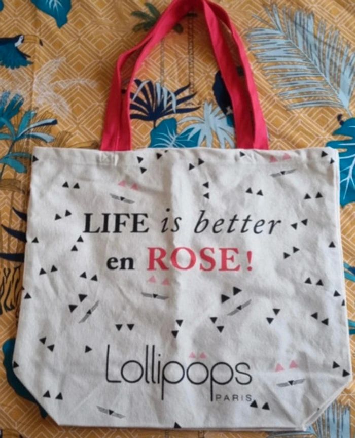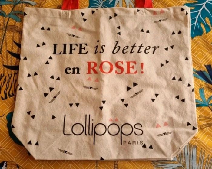 Sac cabas Lollipops écru avec écriture devant Anses de couleur rouge Dimensions : 45,5X40,5 cm 100 % coton