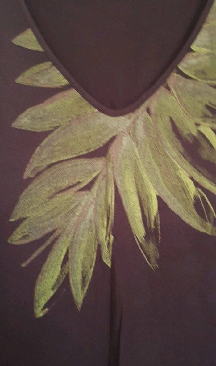 Tee shirt col V marron avec motif feuille - photo numéro 6