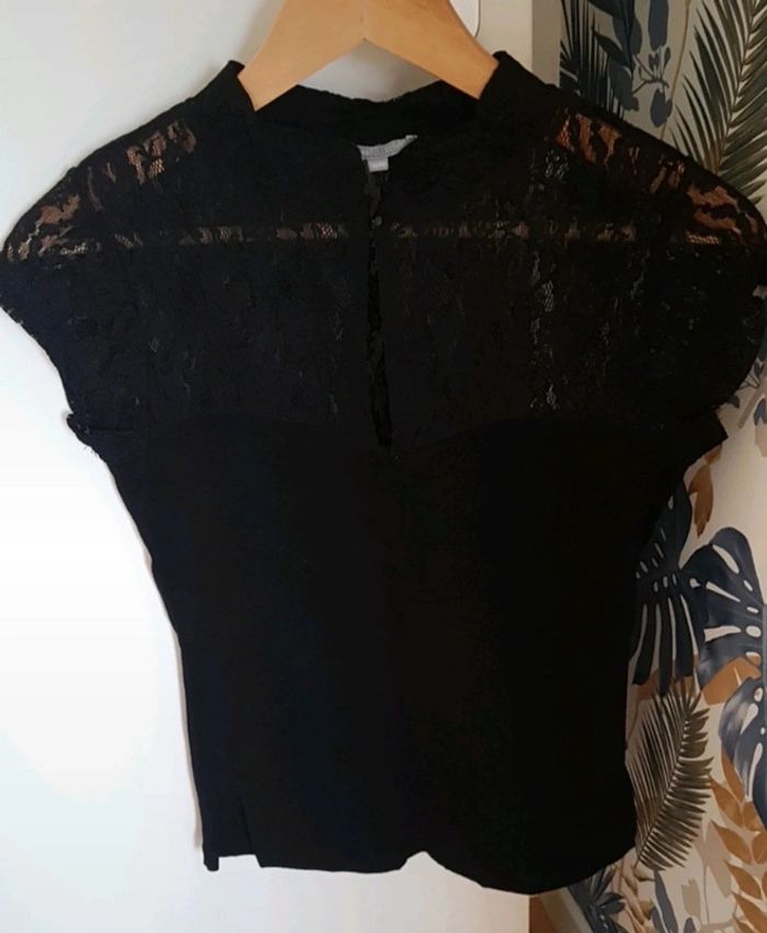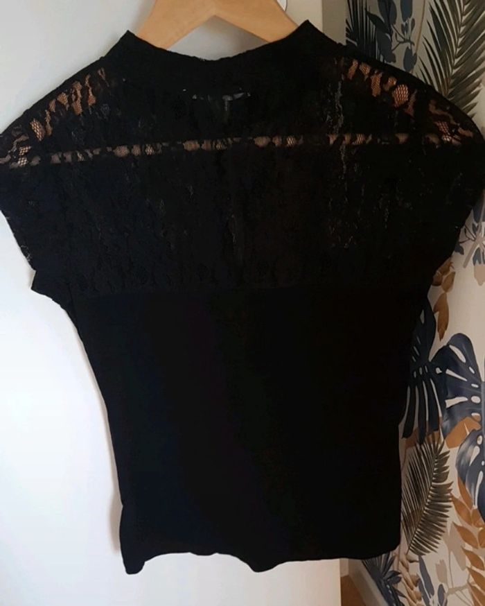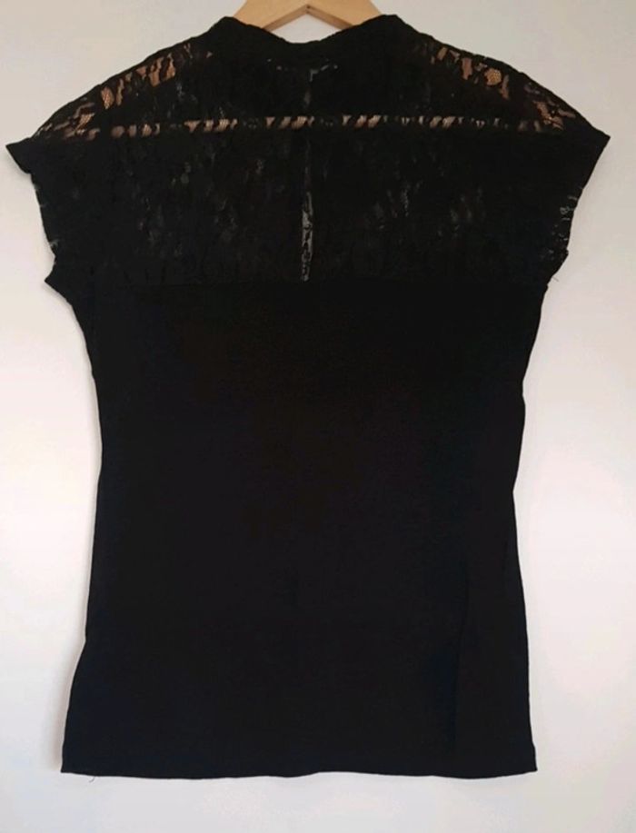 Polo chemise noire avec dentelle Boutonnage avant 95% viscose et 5% elasthanne Taille 38/40