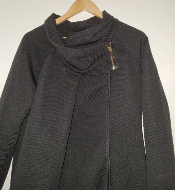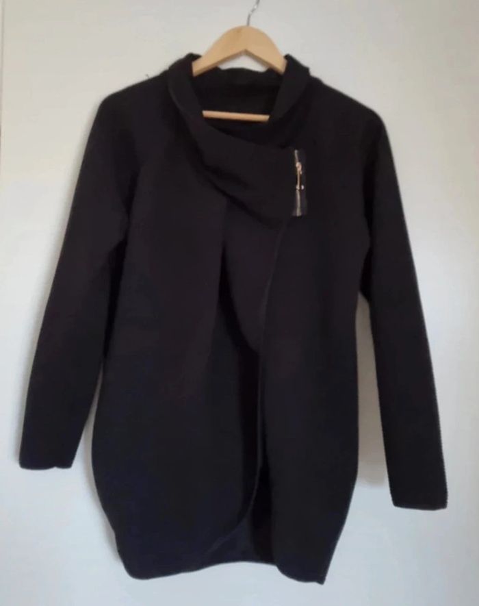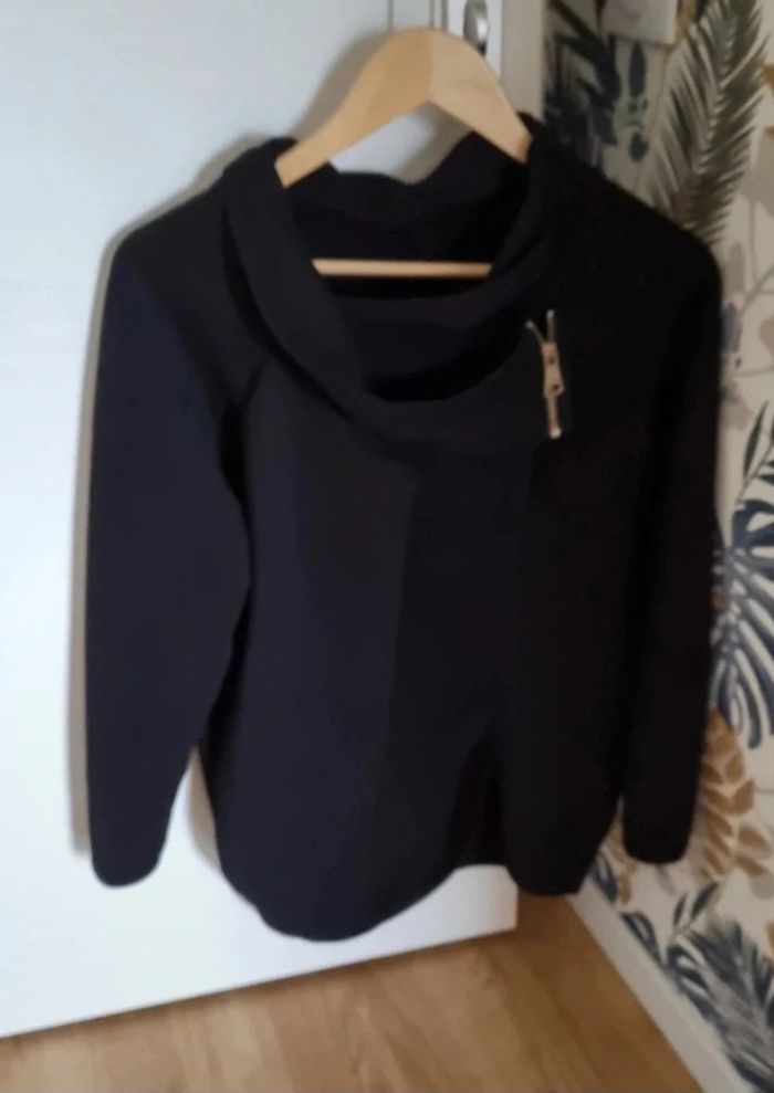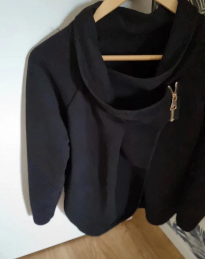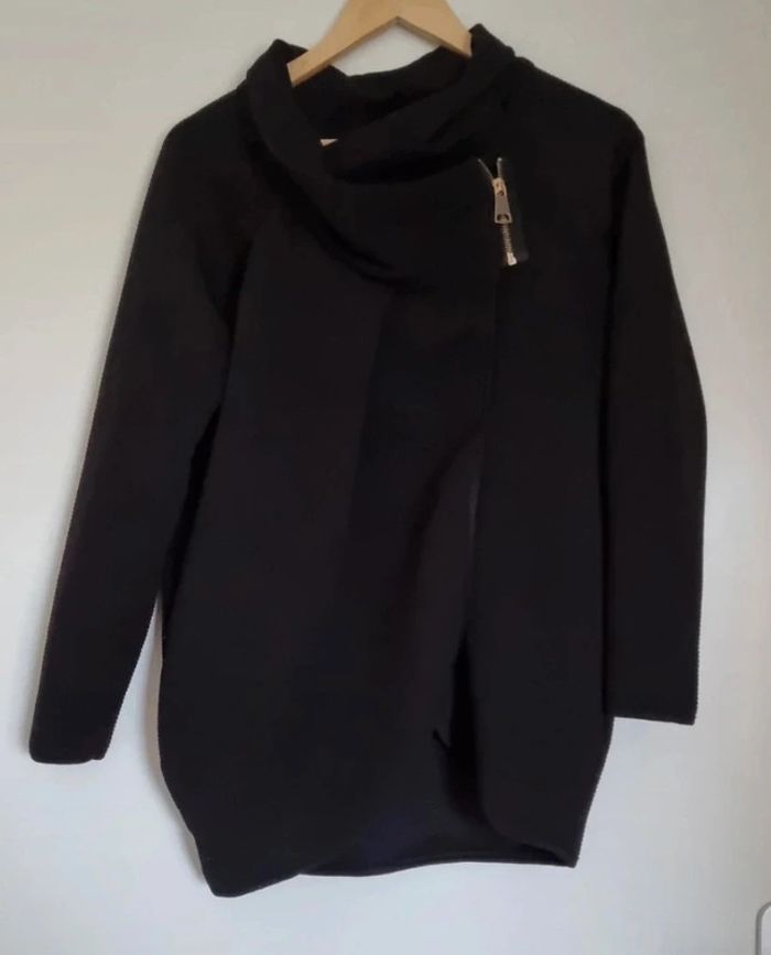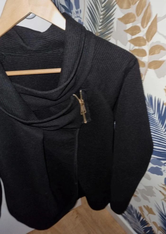 Veste noire femme manches longues Sans doublure Bouton d'attache intérieur et fermeture éclair devant Très bon état Taille 40 95% polyester et 5% elasthanne