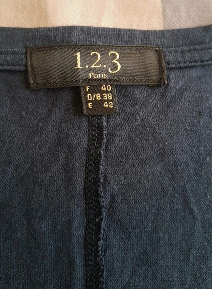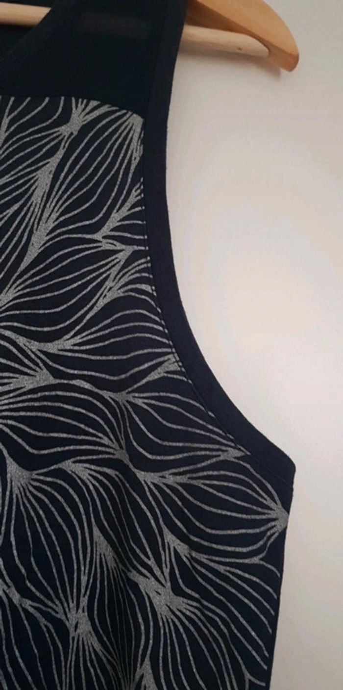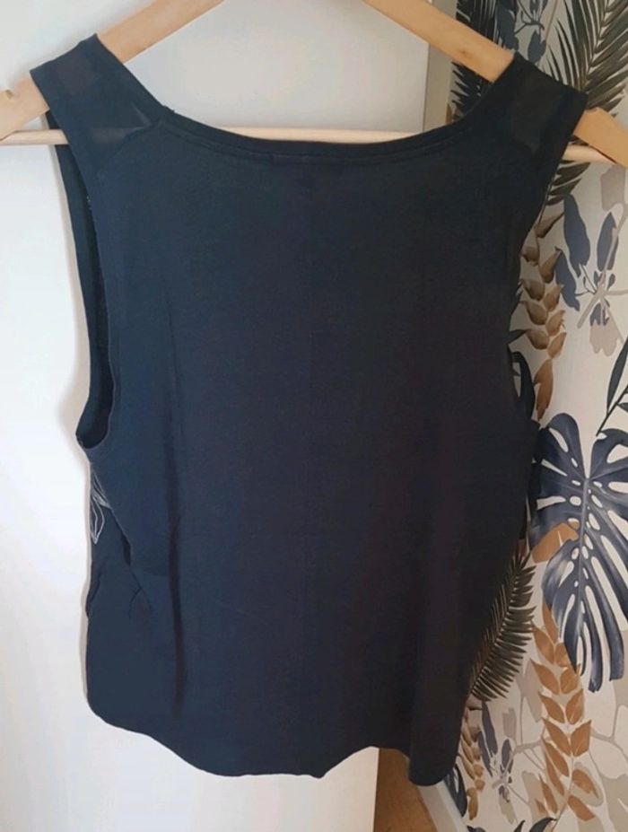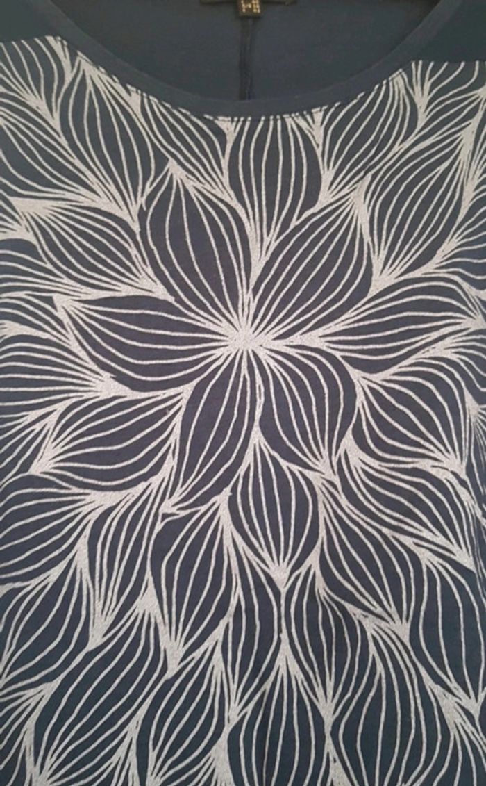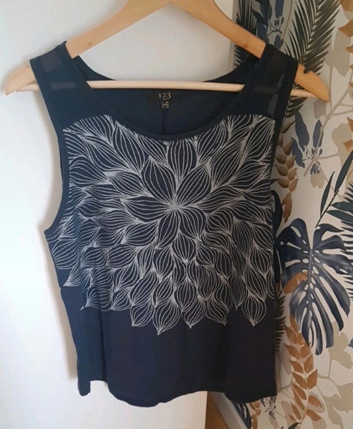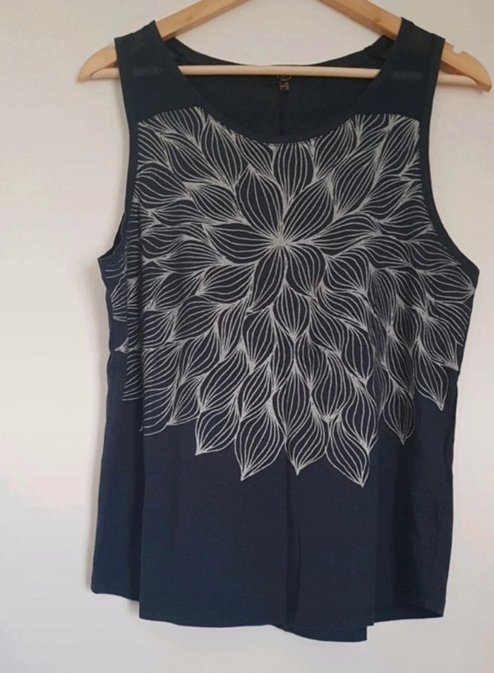 Débardeur bleu avec motif fleur géante argentée sans manches 50% coton et 50% modal Taille 40
