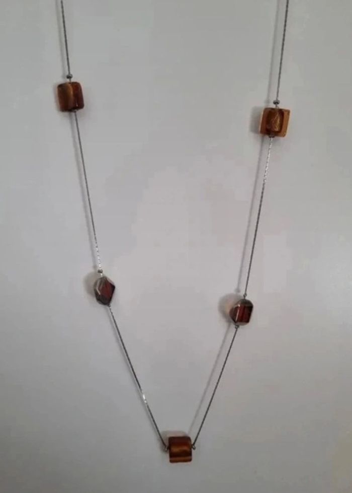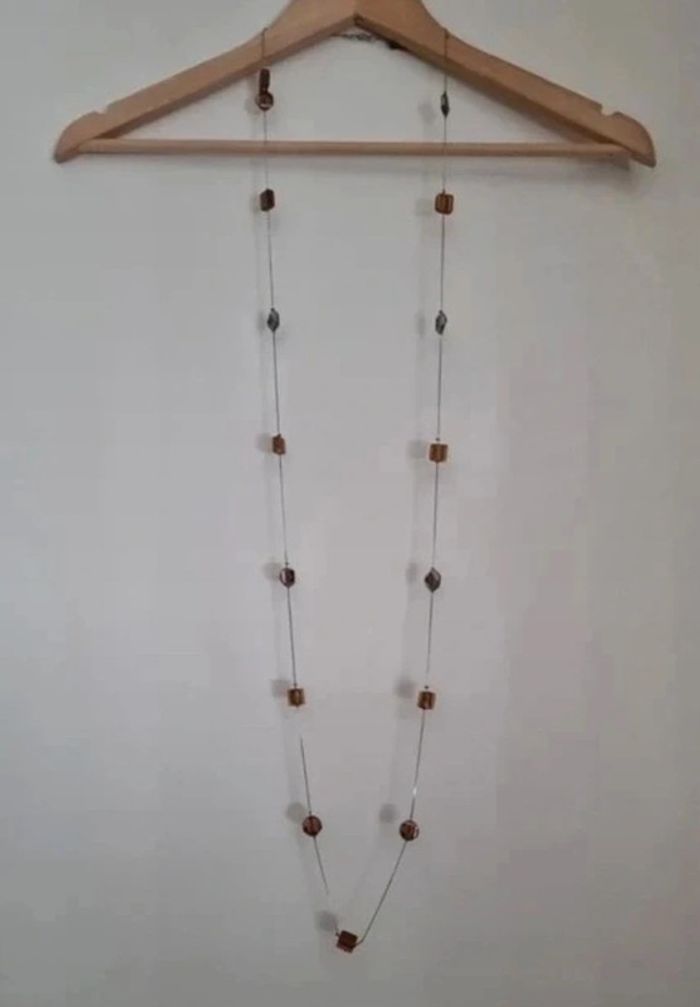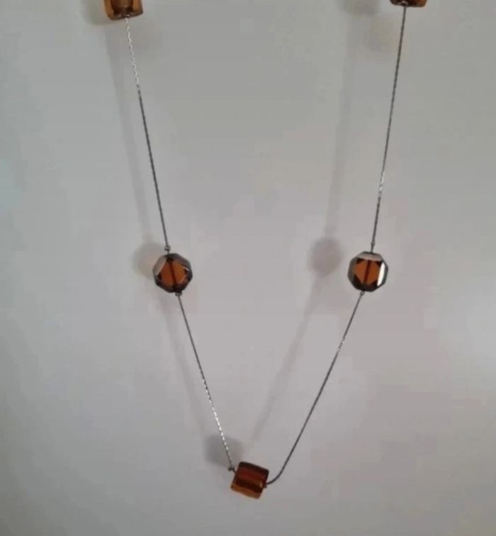 Sautoir long metal argenté et pierres marron Longueur : 74,5 cm Peu porté, comme neuf