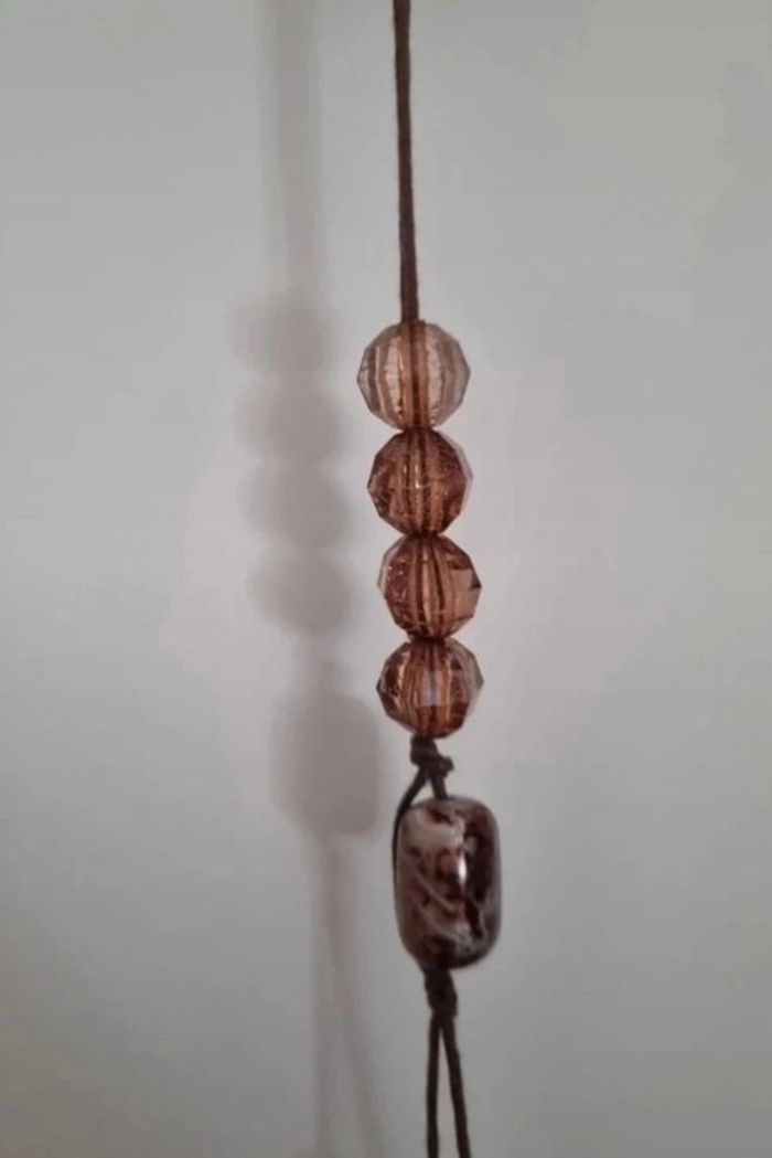 Sautoir long sur double fil de coton et perles marron - photo numéro 9