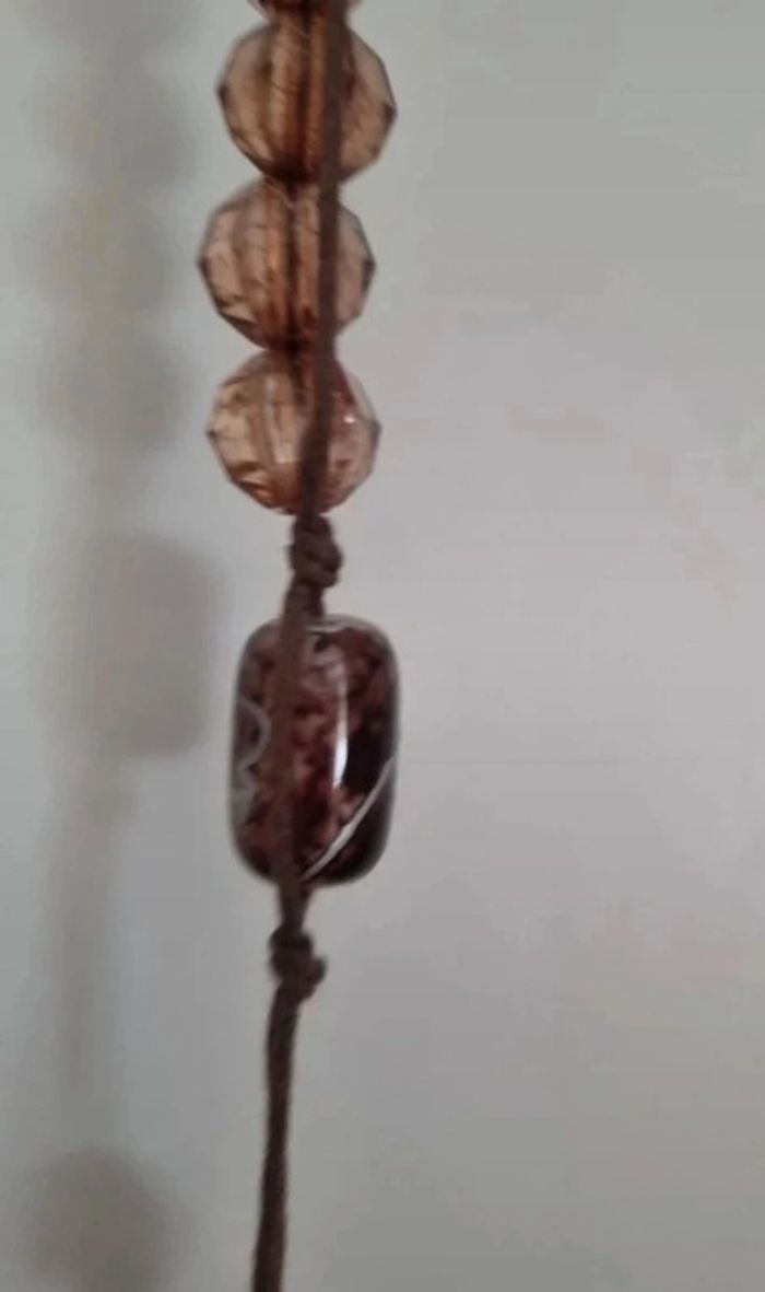 Sautoir long sur double fil de coton et perles marron - photo numéro 5