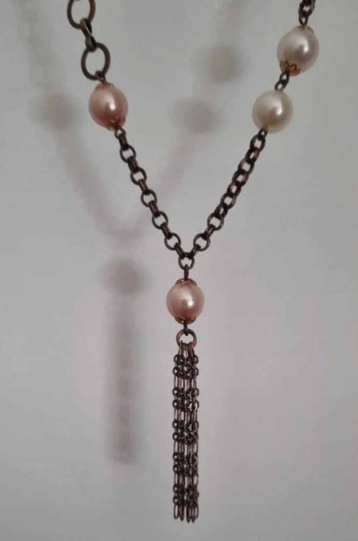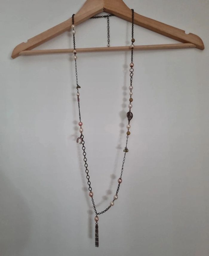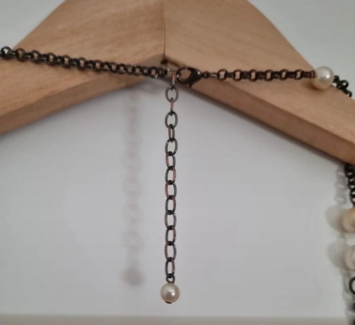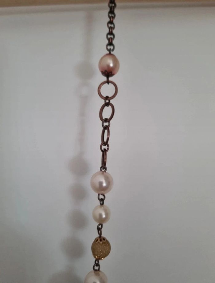 Sautoir fantaisie sur chaîne en métal avec perles de culture - photo numéro 7