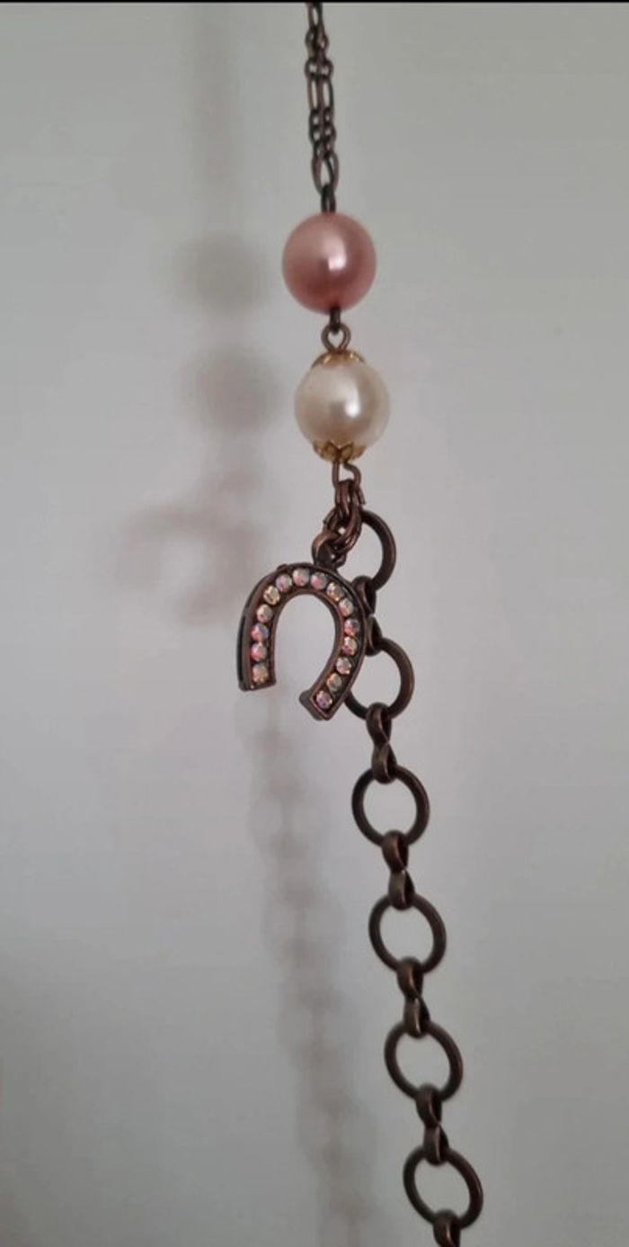 Sautoir fantaisie sur chaîne en métal avec perles de culture - photo numéro 10