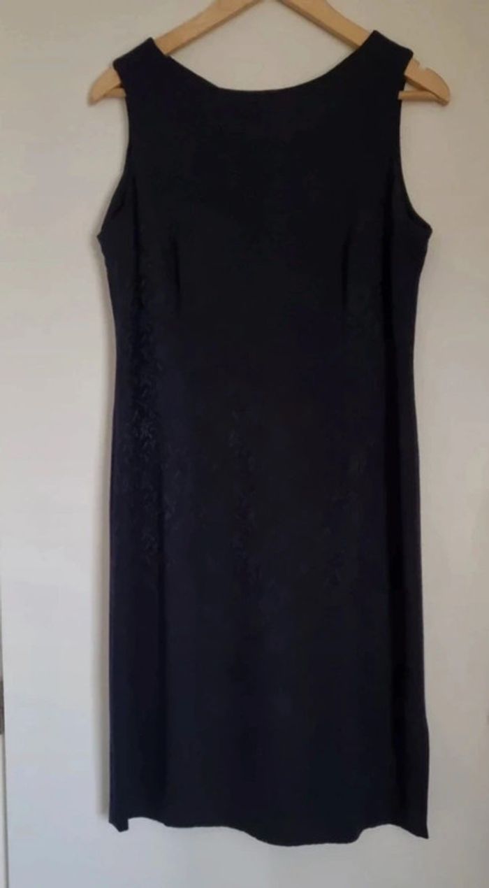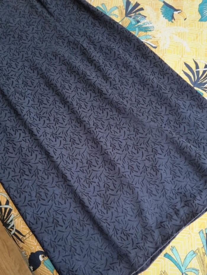 Robe bleu marine sans manches à motifs Fermeture éclair au dos Fente au bas de la robe côté gauche Matière : 65% viscose, 30% polyester et 5% elasthanne Robe non doublée Très peu portée Longueur : 100 cm Largeur d'aisselle à aisselle : environ 50 cm