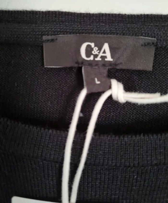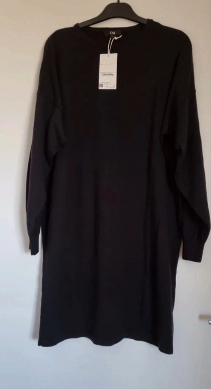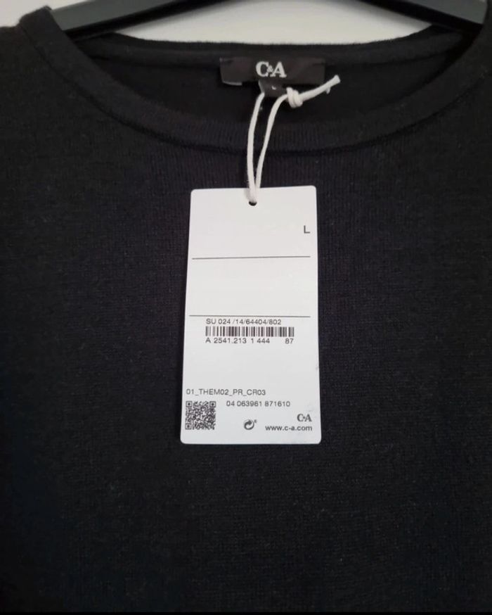 Robe pull noir col rond manches longues 41% coton, 49% acrylique Longueur : 94 cm Taille L