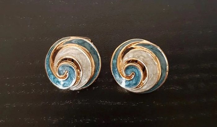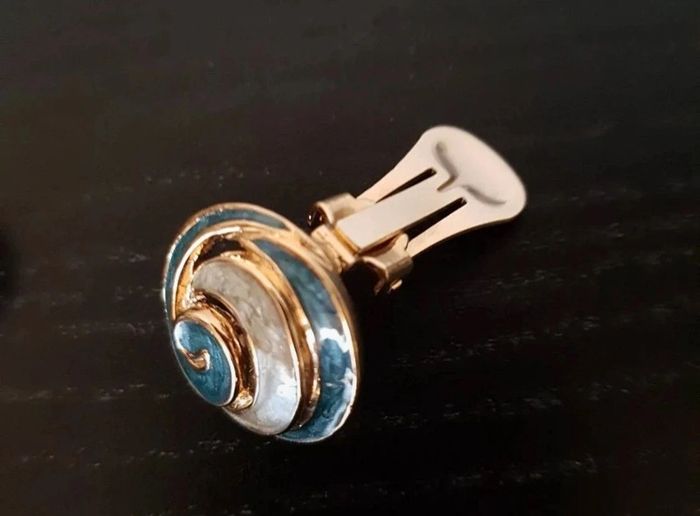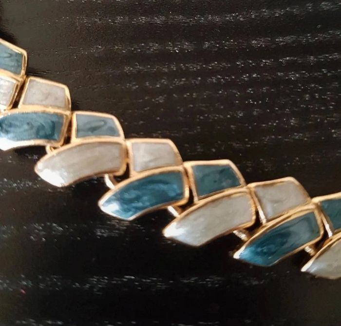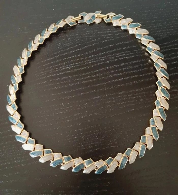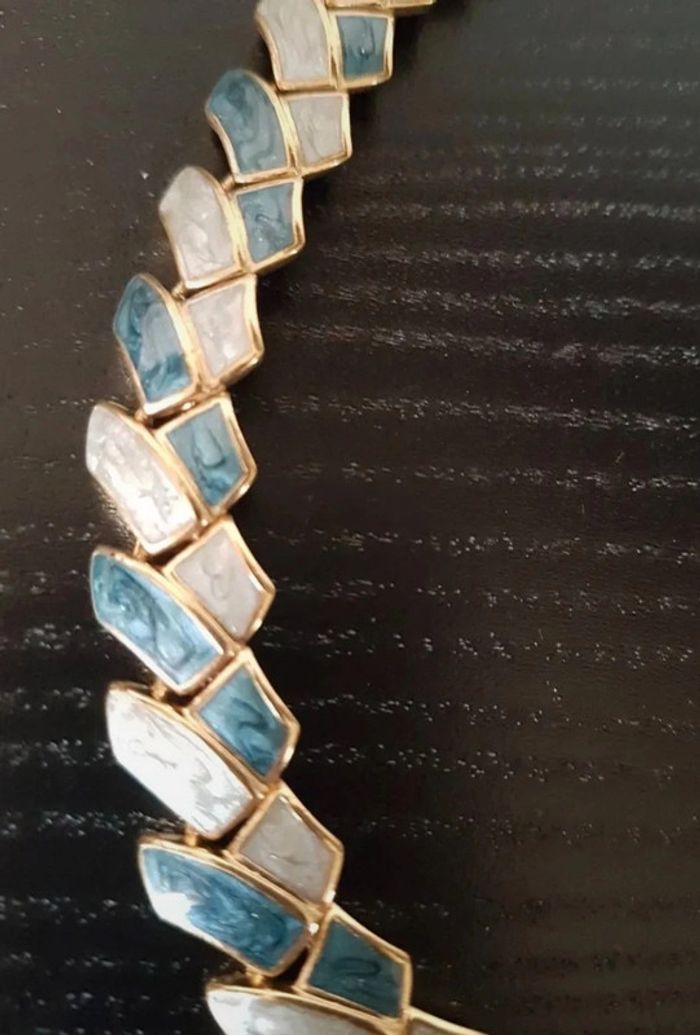 Parure collier et boucles d'oreilles clip métal nacré bleu blanc cassé 42 cm Jamais portée, neuf Livré sans boîte