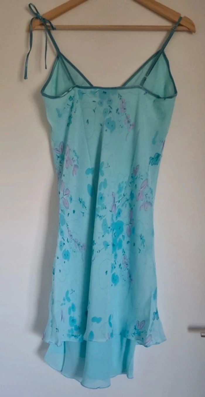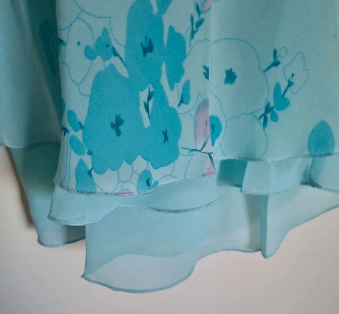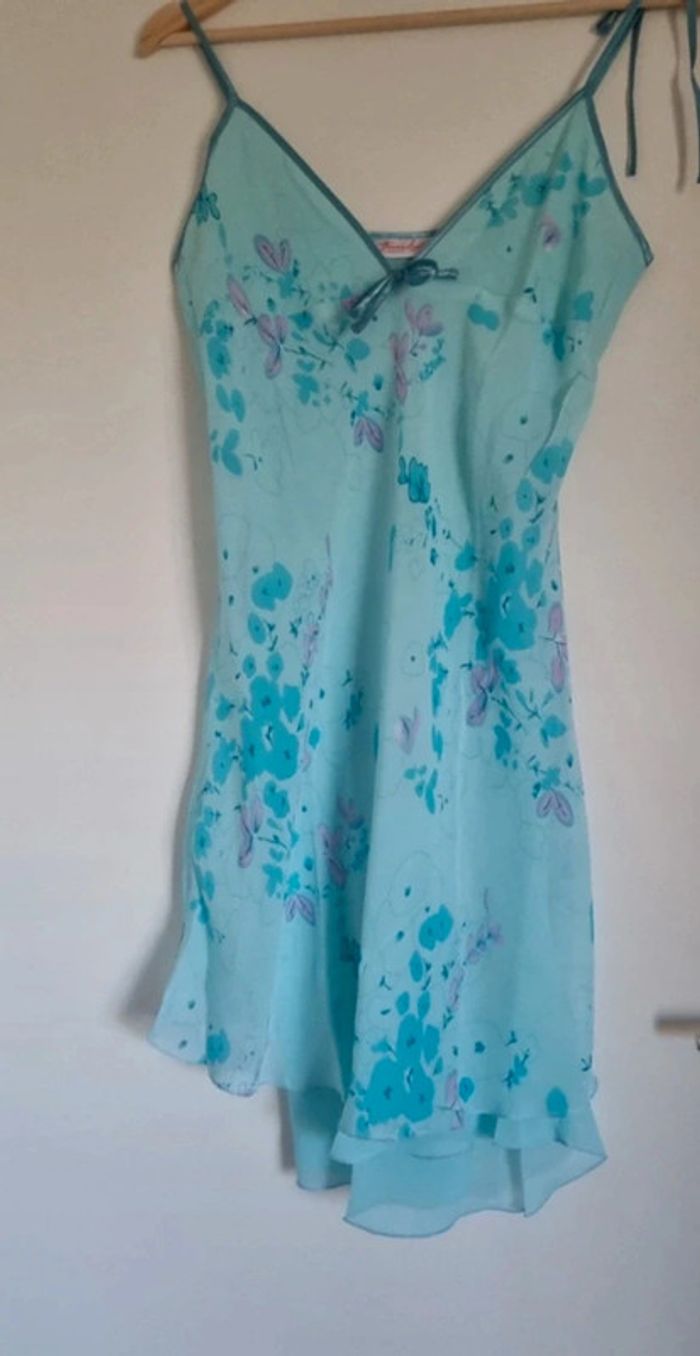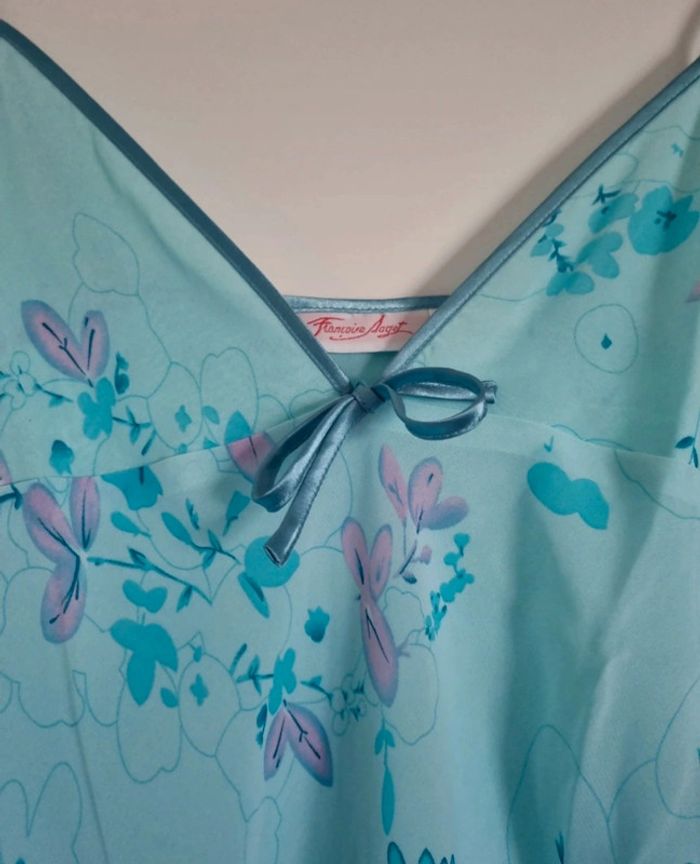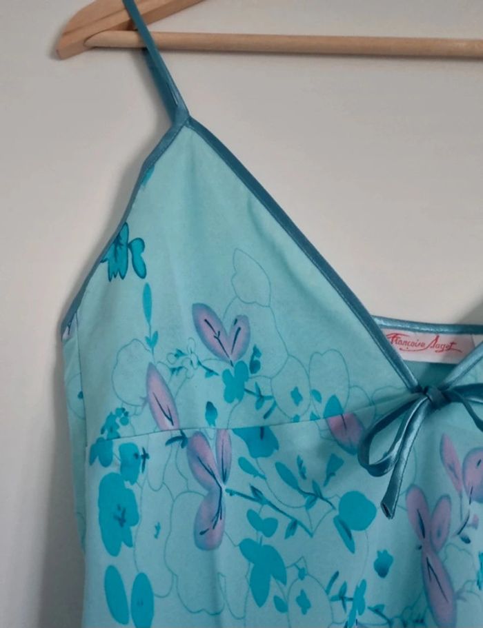 Nuisette bleue à fleurs à bretelles, avec nœud d'attache sur bretelles gauche, avec doublure Taille 38/40 100% polyester
