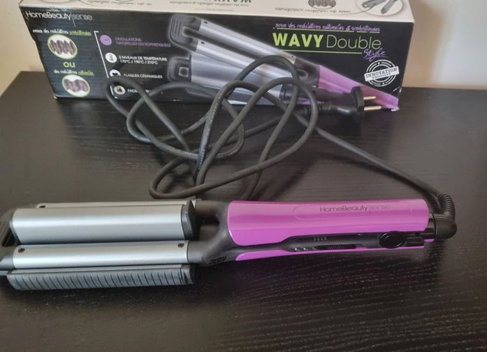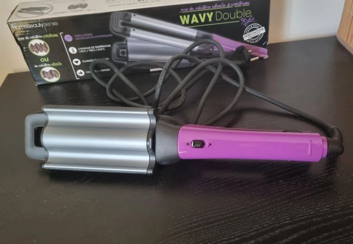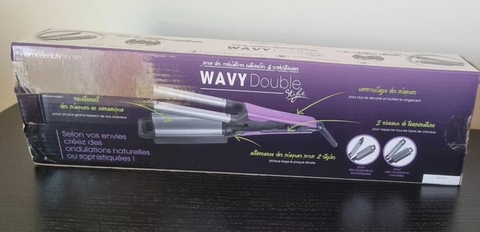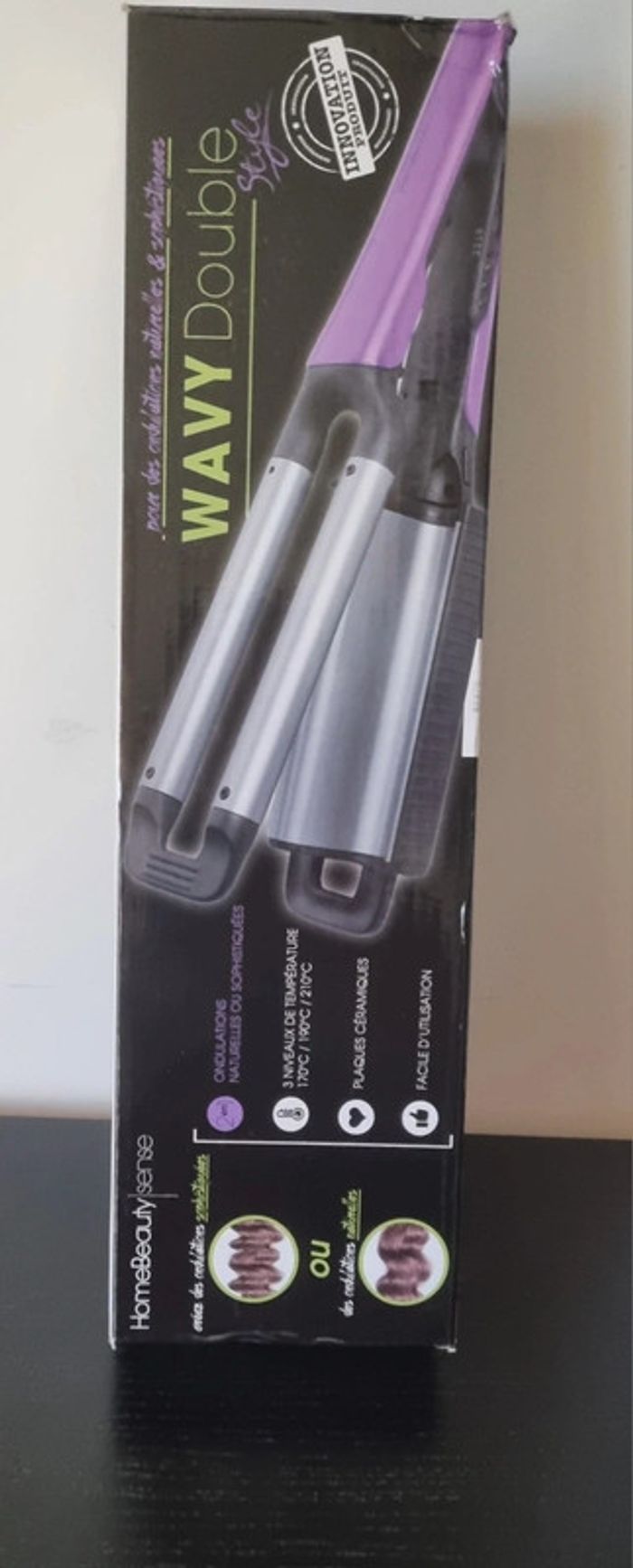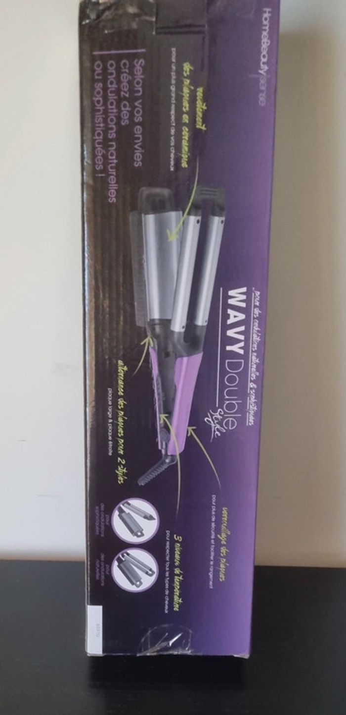 Fer à onduler Wavy double Style Pour sublimer vos cheveux, optez pour le fer à boucler ! Que vous préfériez les ondulations naturelles ou sophistiquées ! Le produit Wave double style est un fer à onduler muni de plaques en céramiques. Doté d'une température réglable de 170, 190 et 210 degrés pour s'adapter à tous types de cheveux, il s'arrête automatiquement au bout d'1 heure d'utilisation et ses plaques se verrouillent. Les 2 plaques Utilisé 2 fois Prix boutique : 49,90€