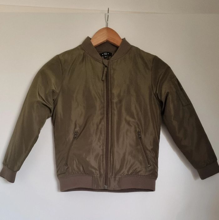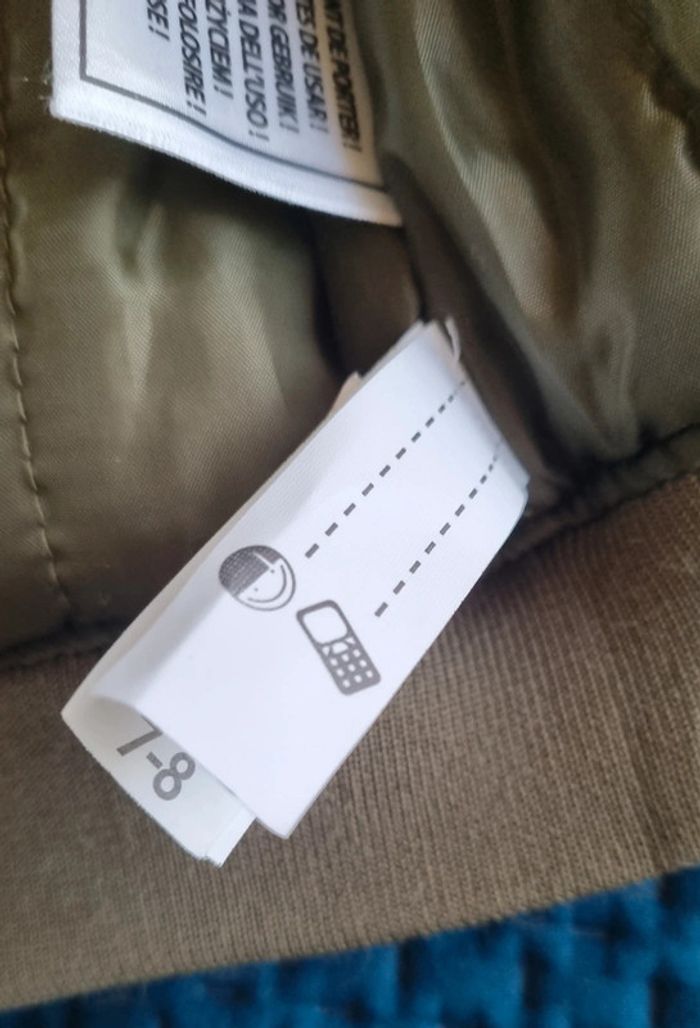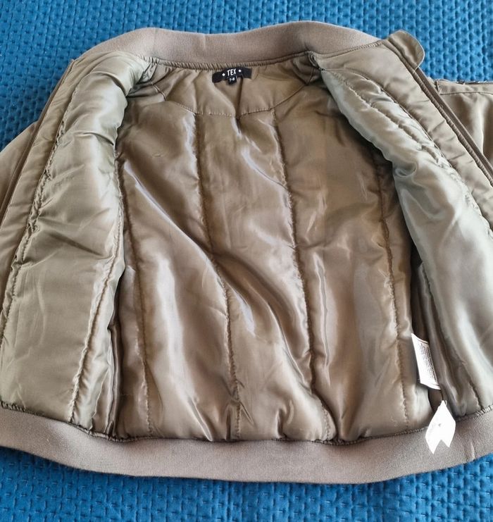 Blouson vert kaki Avec fermeture éclair à l'avant E poches avec fermeture éclair Poche avant bras gauche avec fermeture éclair Col rond Dimensions : Matière : 100% polyester Taille 7/8 ans Intérieur matelassé Neuf, jamais porté  "Veuillez consulter mes autres articles, je fais un grand tri."