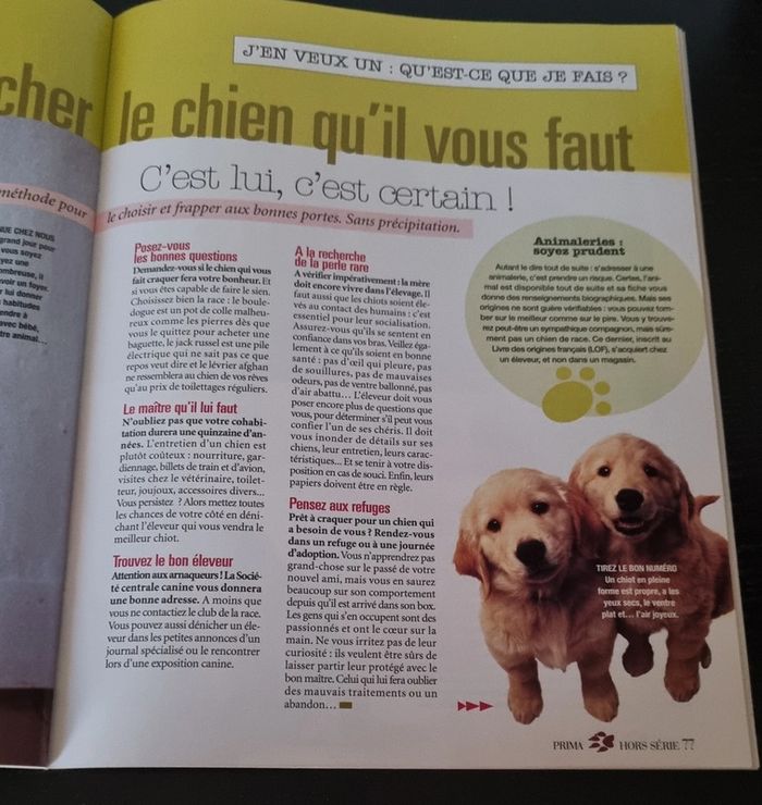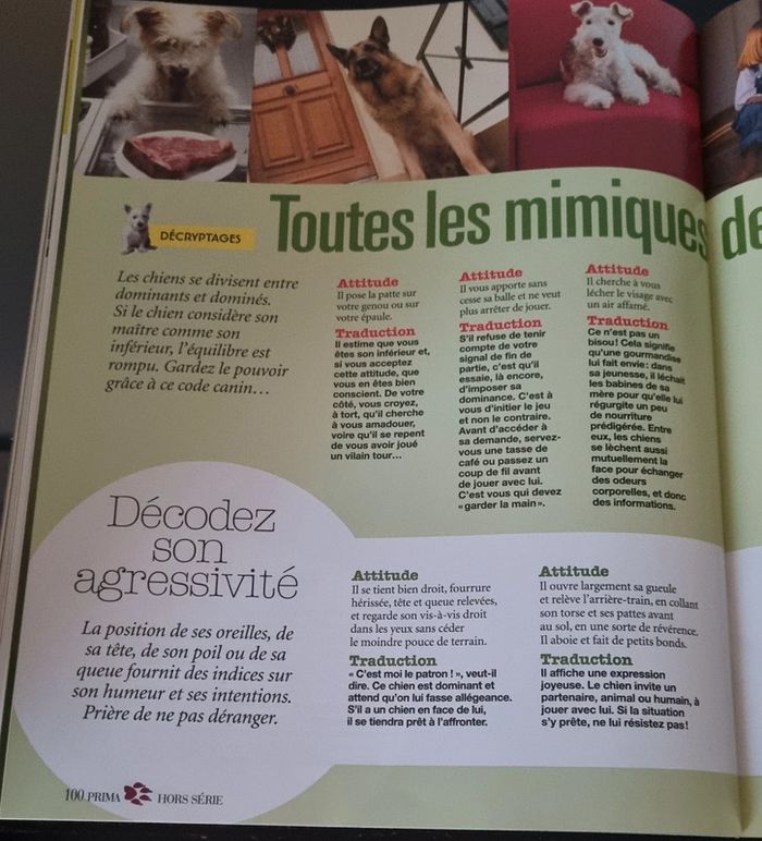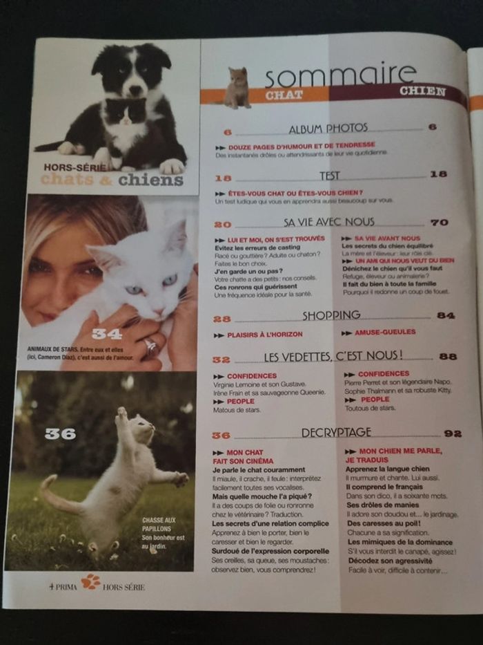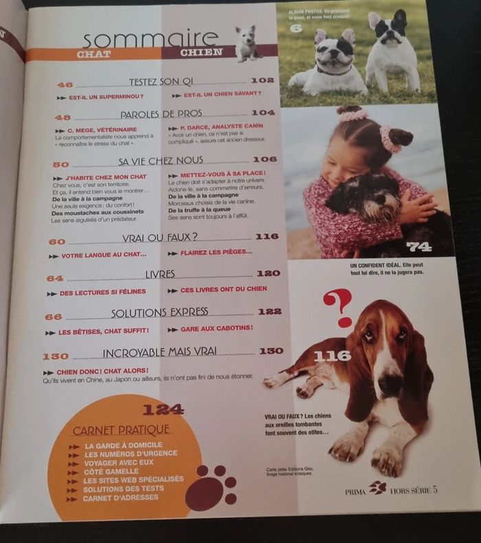Hors série Prima, Le chat, le chien et moi Mieux les comprendre pour mieux les aimer Psycho: Testez-vous Testez- les ! Decodeur: parlez vous leur langue ? Albums photos : 12 pages d'humour et de tendresse