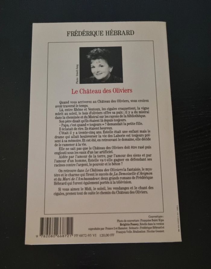 Roman Le Château Des Oliviers 430 pages Livre comme neuf Un merveilleux roman sur le refuge de tant d'Européens, la Provence. Le vignoble de la jeunesse d'Estelle s'étendait entre le Rhône et le Mont Ventoux. Dans cette idylle, elle a vécu ses jeunes années. A-t-elle déjà été heureuse ? Lors des retrouvailles annuelles dans le domaine familial aujourd'hui délabré, Estelle Laborie décide de ne pas rentrer à Paris et de rester dans l'Arcadie de sa jeunesse. Elle est déterminée à redonner gloire et bonheur au milieu des vignes et des oliviers. Les années parisiennes furent parfois éprouvantes pour Estelle. Elle est divorcée, rien ne la retient avec les enfants. Cependant, il n’y a pas de retour immédiat aux années dorées de la jeunesse. Il semble qu'il y ait une malédiction sur le domaine.