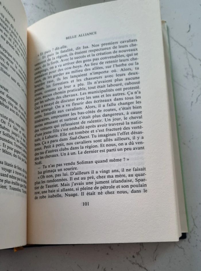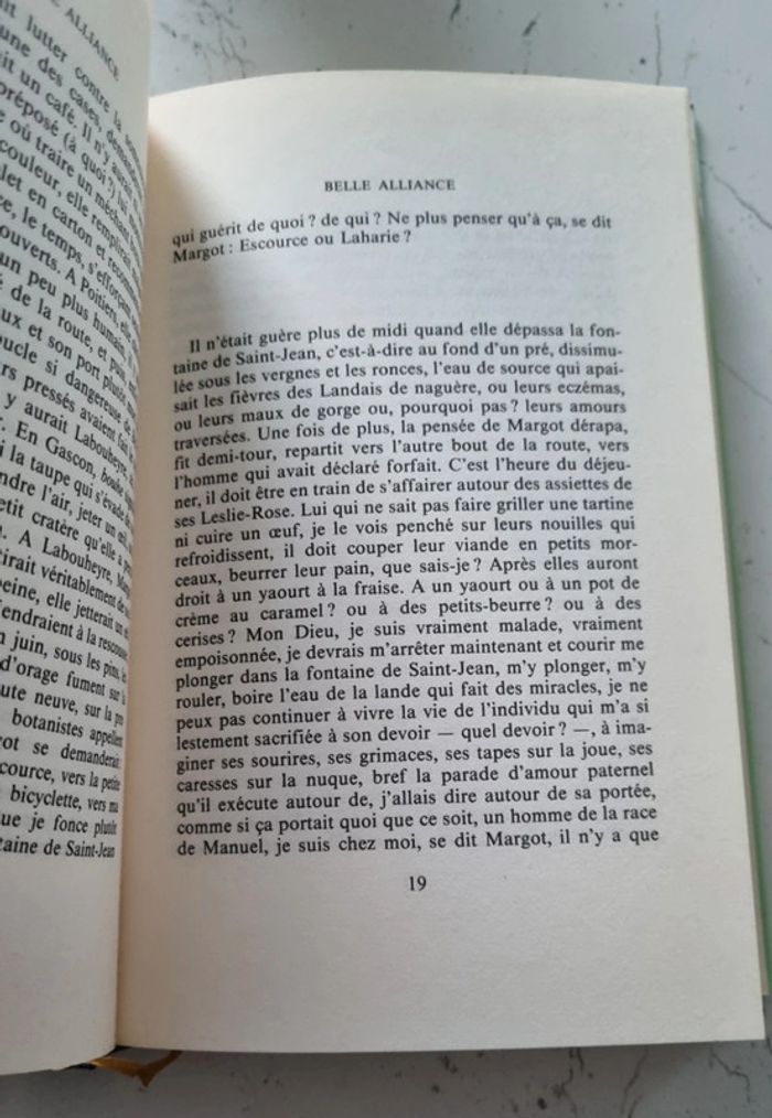 livre de 251 pages comme neuf mais la page de couverture est un peu déchirée sur le côté gauche en bas Résumé : Ce pourrait être le nom d'une pouliche, ou d'une goélette, mais c'est celui d'une vieille maison des Landes, Belle Alliance, la demeure où Margot a passé son enfance illuminée, parmi les fleurs, les pins et les chevaux. C'est là qu'est morte sa mère, quelques années plus tôt.